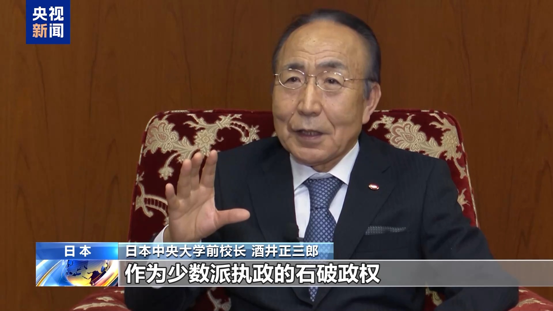 日本中央大学前校长 酒井正三郎:作为少数派执政的石破政权现在最依赖的是什么?那就是争取到舆论的支持。因为政权成了众议院中的少数派,随时都有可能面临不信任案的挑战。如果被在野党提出不信任案,作为少数派执政,政权随时有可能被推翻。