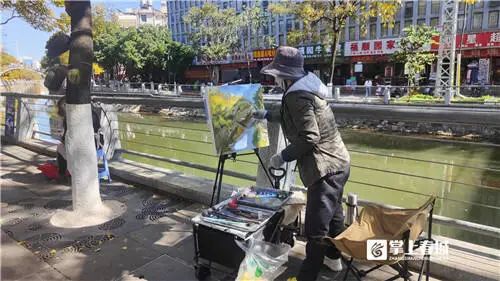 对于喜爱绘画的朋友来说,河畔写生是一个不容错过的活动。在大观河畔,绘画爱好者们支起了画架,以鸥和大观河的美景为素材进行写生创作。这里灵动的鸥群、波光粼粼的河水以及两岸金黄的滇朴,为写生提供了绝佳的自然景观。“大观河畔太美了,在这里作画感觉自己的灵感十分充沛。”正在作画的市民王女士高兴地说。一排排描绘大观河畔美景的画作正摆在河边供大家观赏,为整个区域增添独特的艺术氛围。