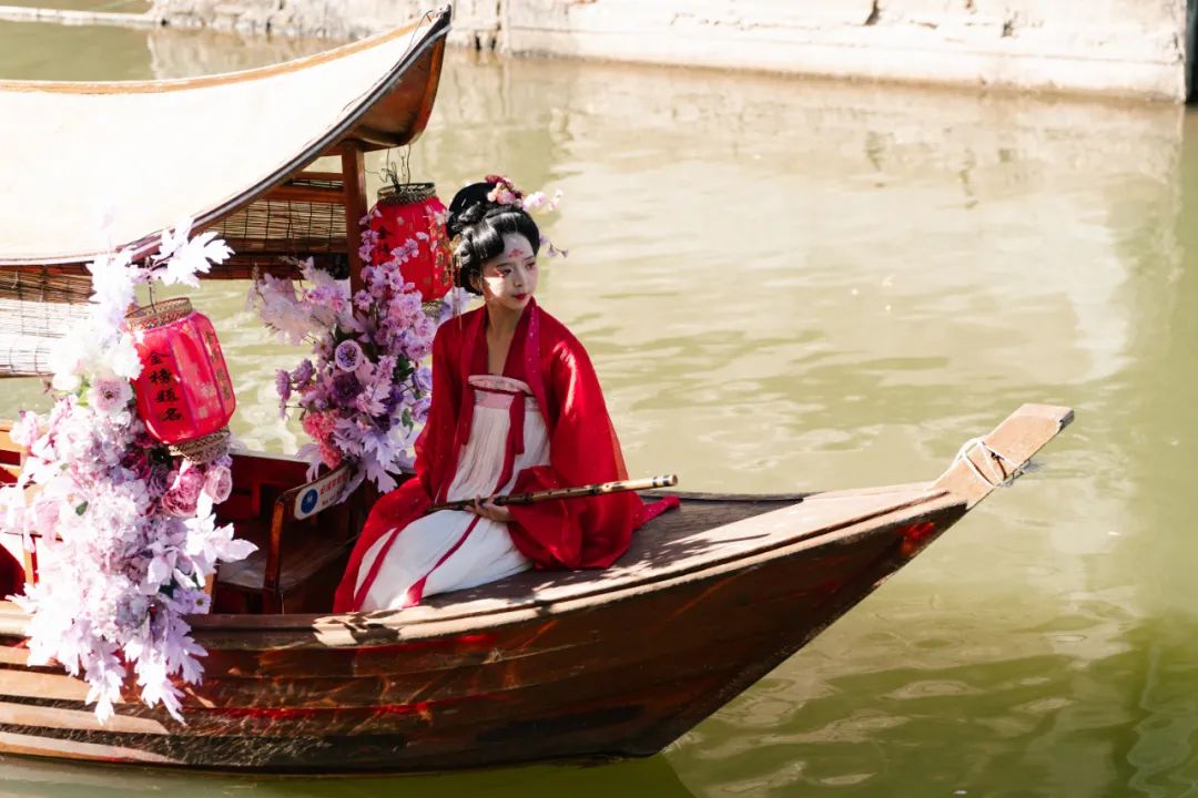 当天活动中的古船演艺,带领观众穿越时空。在大观河上的古船上,演员们通过情景再现的方式,演绎出昆明的历史文化故事。市民游客一边欣赏着表演,一边感受着昆明的历史底蕴,同时还能观赏到大观河上的鸥群,体验古今交融的独特氛围。