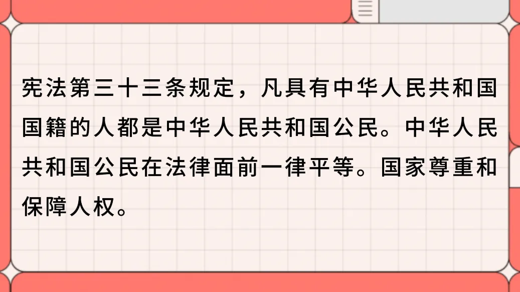 从出生的那一刻起,我成为了中华人民共和国的公民。从那天开始,宪法就保护着我。