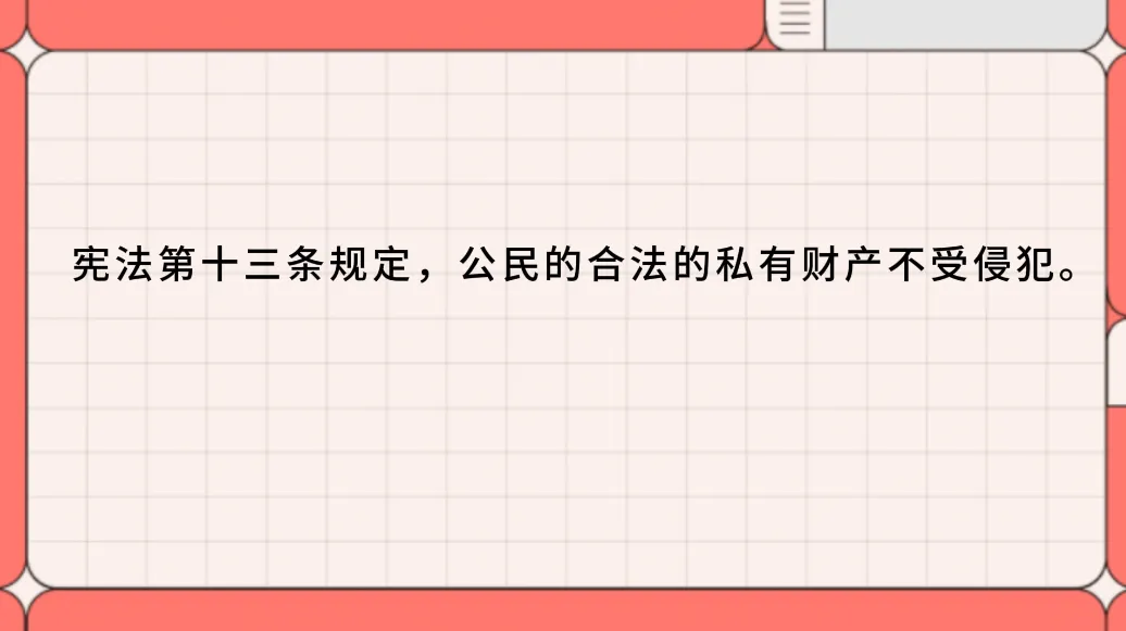 其次,宪法规定了我国的基本经济制度,在保护社会主义公共财产的同时,保护公民合法的私有财产。