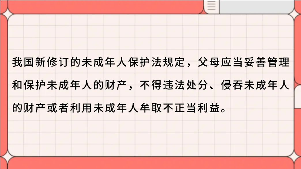 因此,我们的压岁钱归未成年人本人所有,可以委托父母保管,父母不能据为己有,也不能单纯为自己消费。在处置压岁钱的时候,应该充分尊重我们的意见,保护我们的权益。