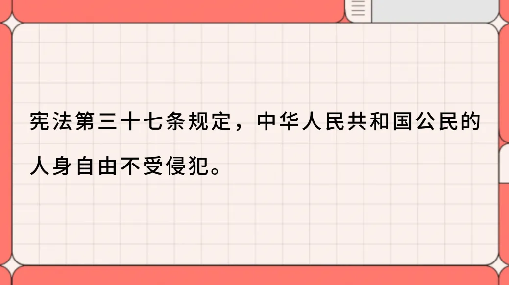 宪法保护我,任何人都不能侮辱我的人格,损害我的名誉。更不能随意限制我的人身自由。