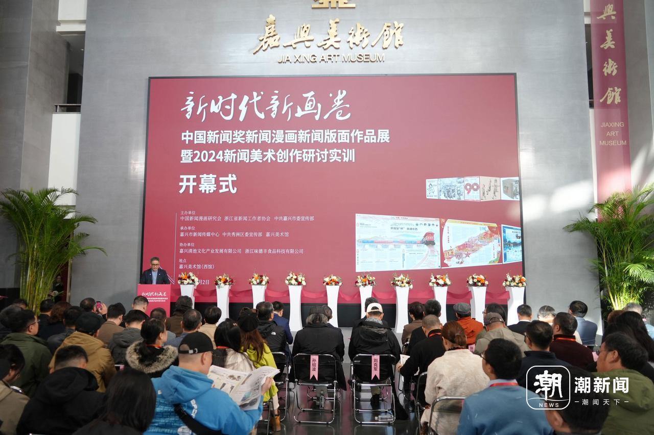 2日上午,以“新时代新画卷”为主题的中国新闻奖新闻漫画新闻版面作品展暨2024新闻美术创作研讨实训在嘉兴市秀湖畔的嘉兴美术馆(西馆)开幕,吸引了来自全国各地的百余位美术创作者、新闻工作者、专家学者和行业代表参加。中华全国新闻工作者协会党组成员、书记处书记殷陆君出席开幕式,并为研讨实训活动作动员讲话。
