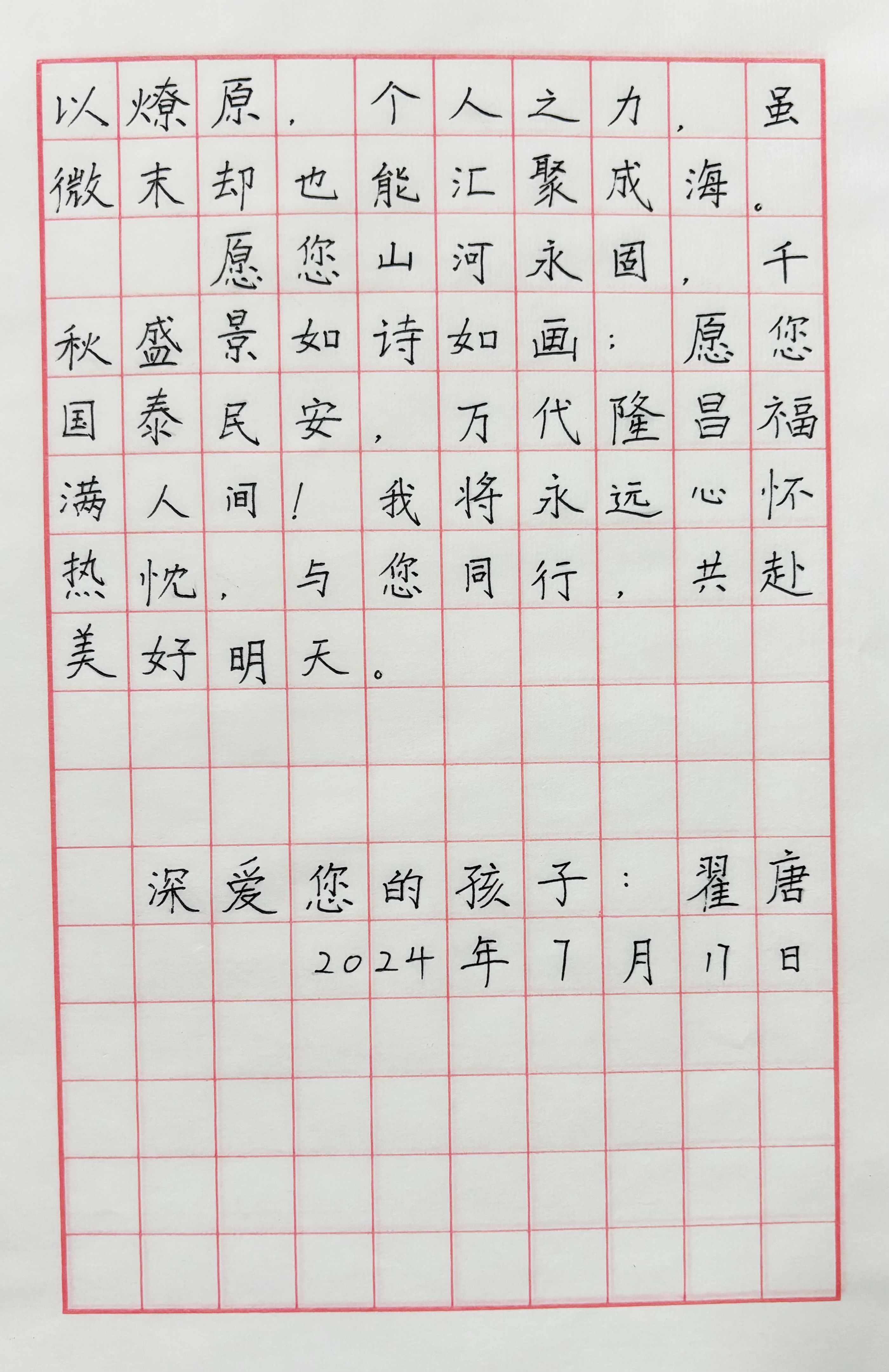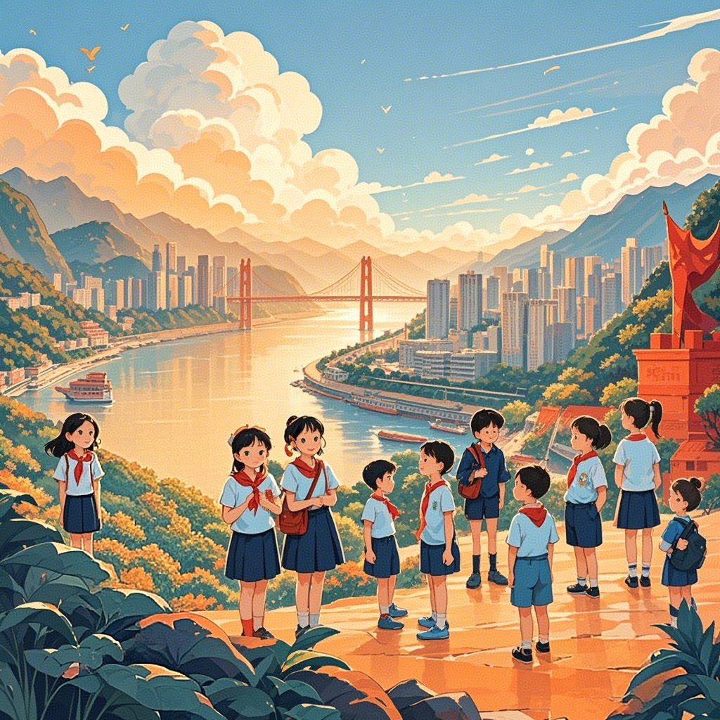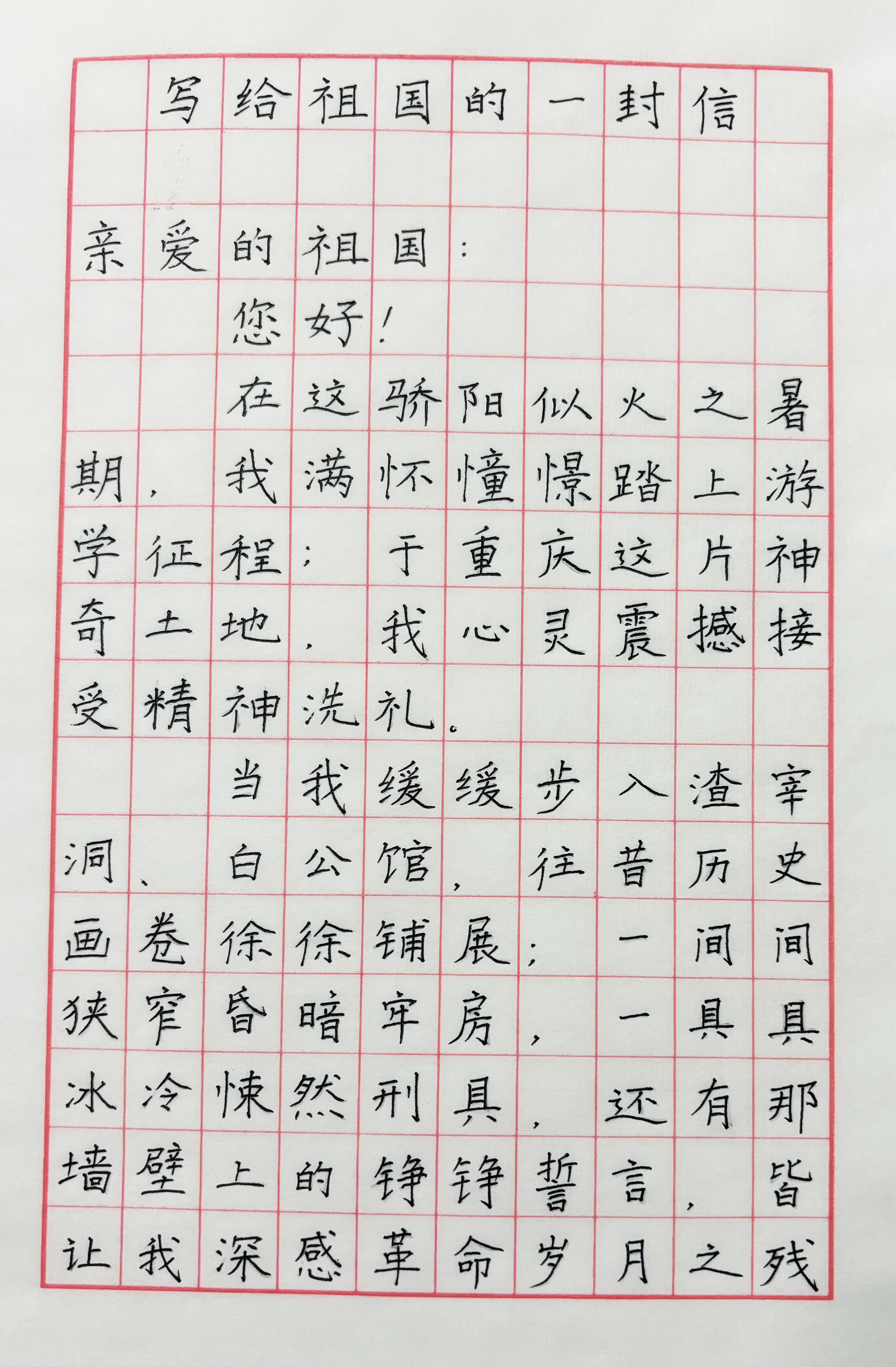 今天这幅AI绘画作品的原型来自北京市东交民巷小学三年级(1)班翟唐的书信作品《写给祖国的一封信》。