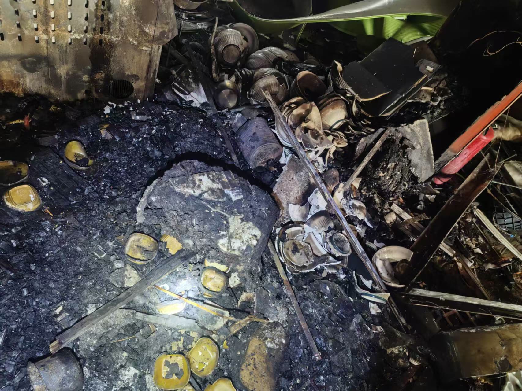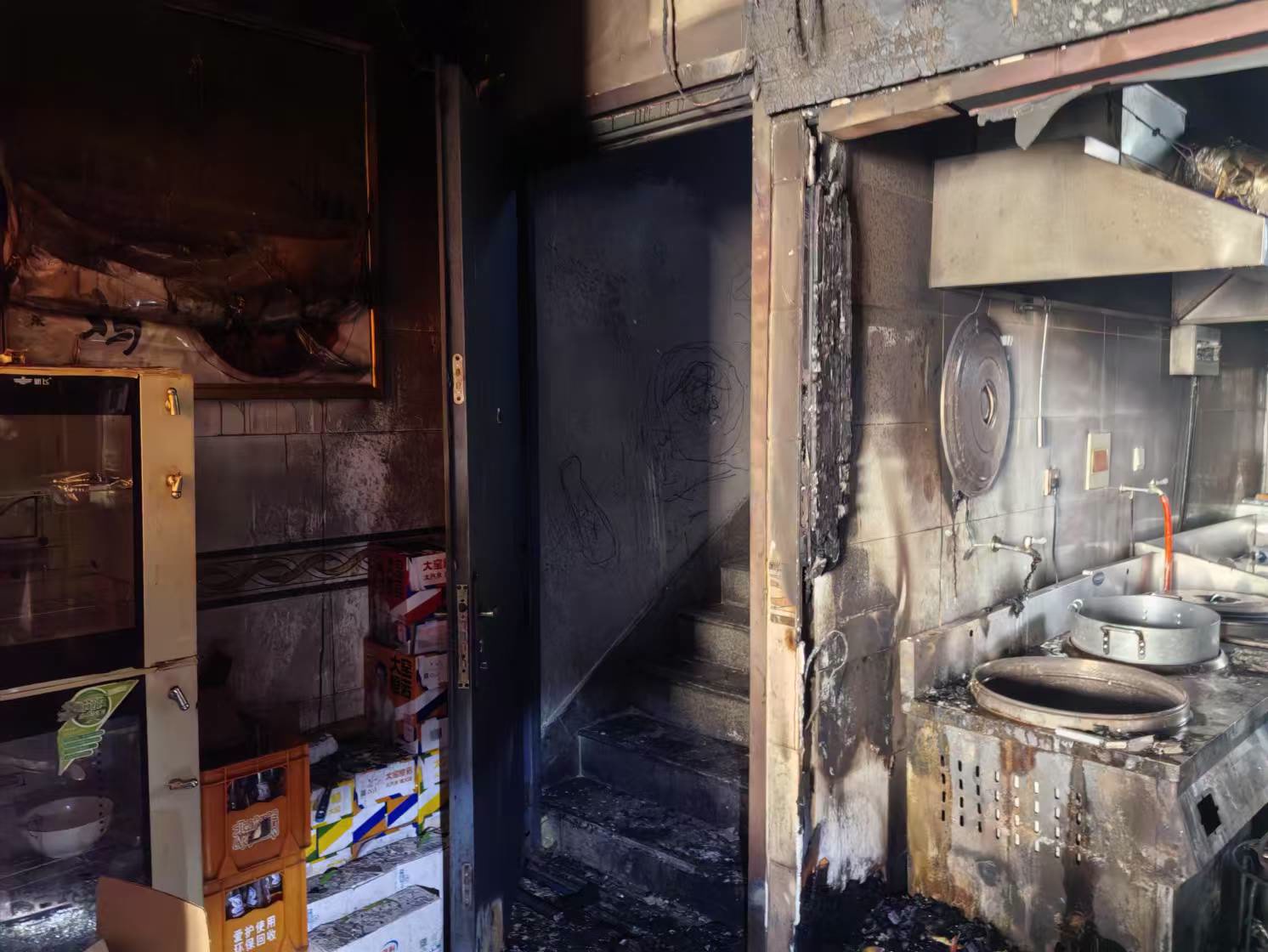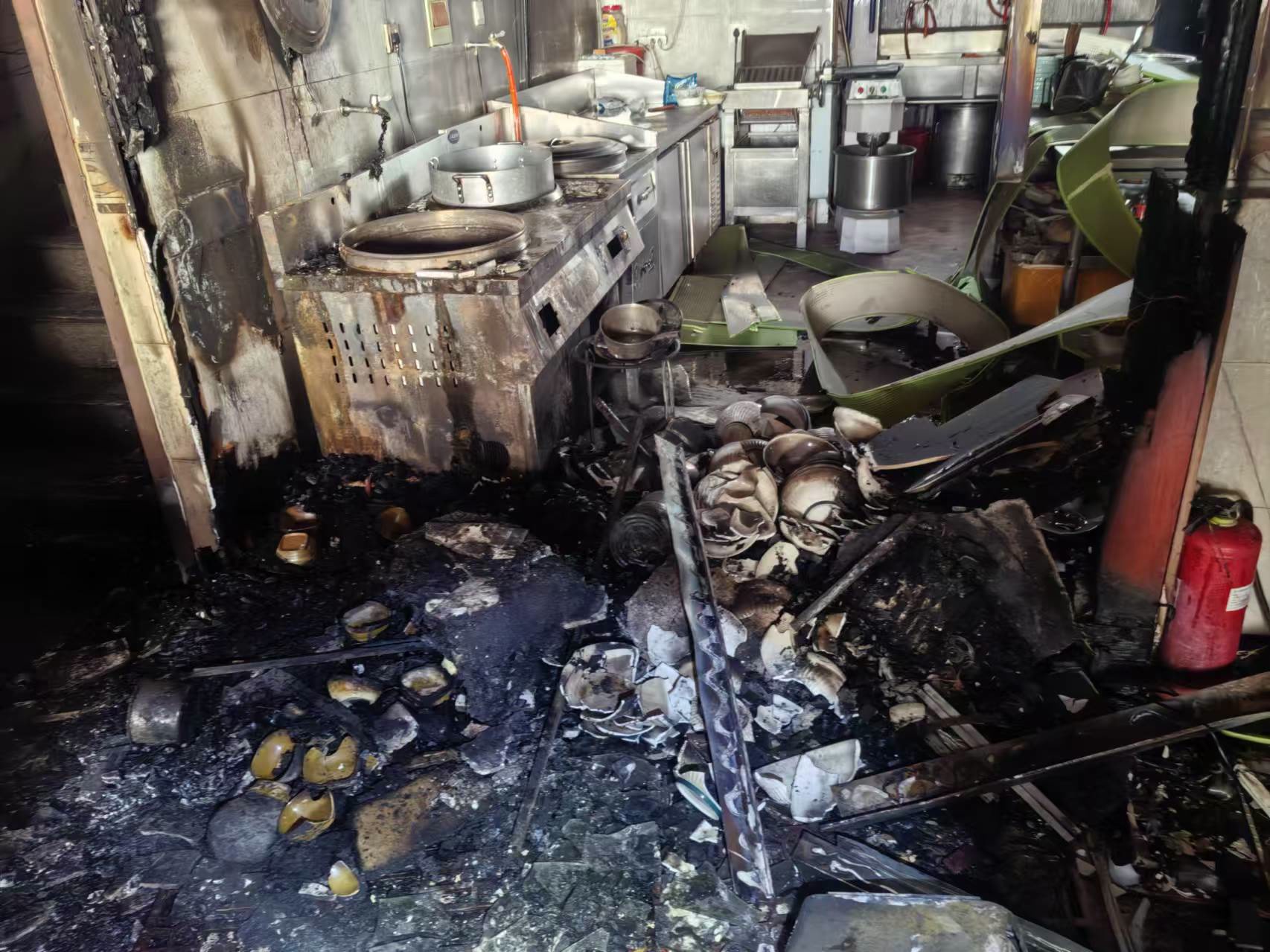 在随后的调查走访过程中,店主介绍,碗柜已经连续使用几年,因卫生和储存需要,几年来从未断过电,也未开展过检修。同时因地方较为狭小,碗柜内还堆放了一次性餐具、一次性筷子等物品,起火后,加快了火势的蔓延。