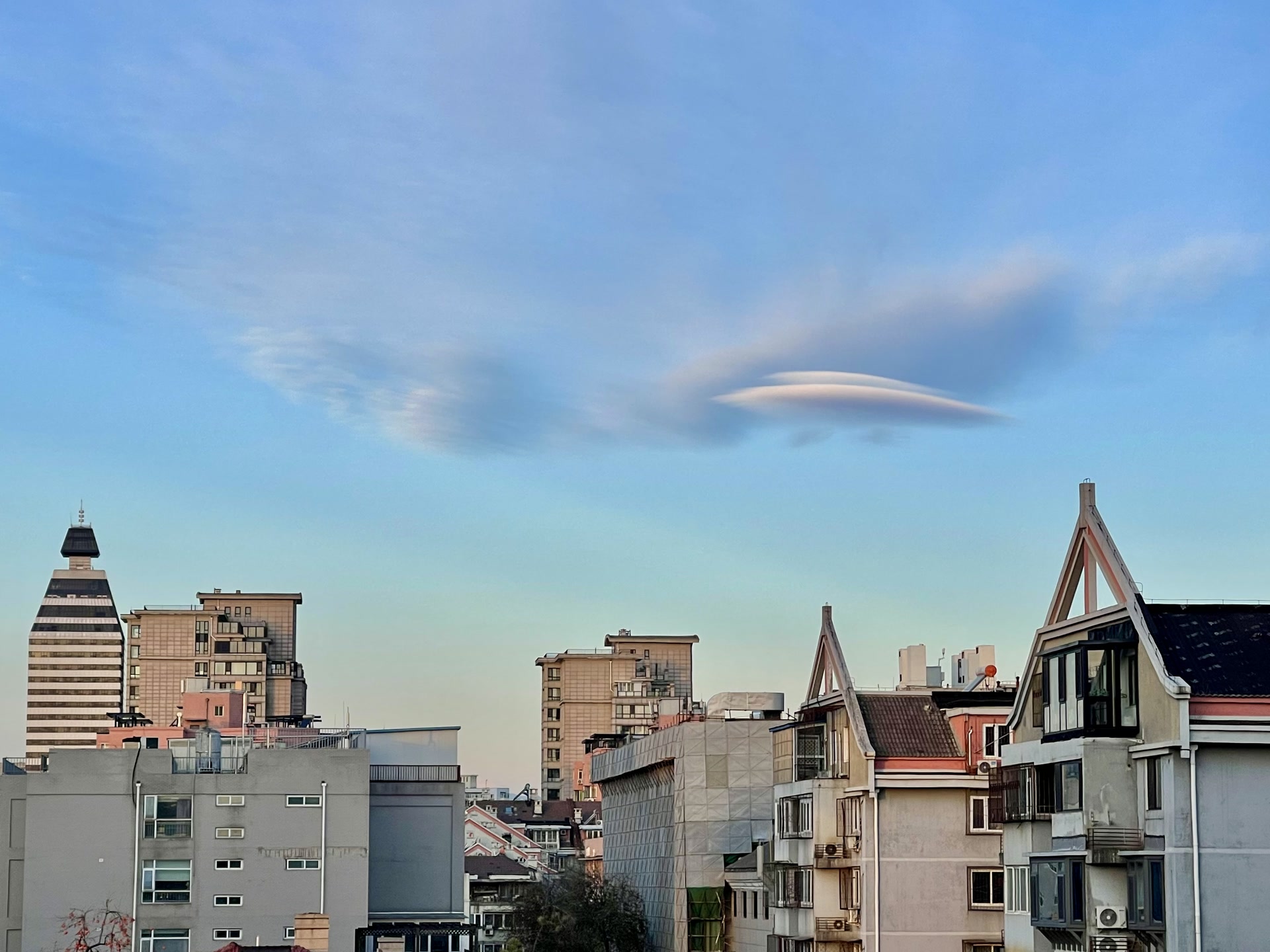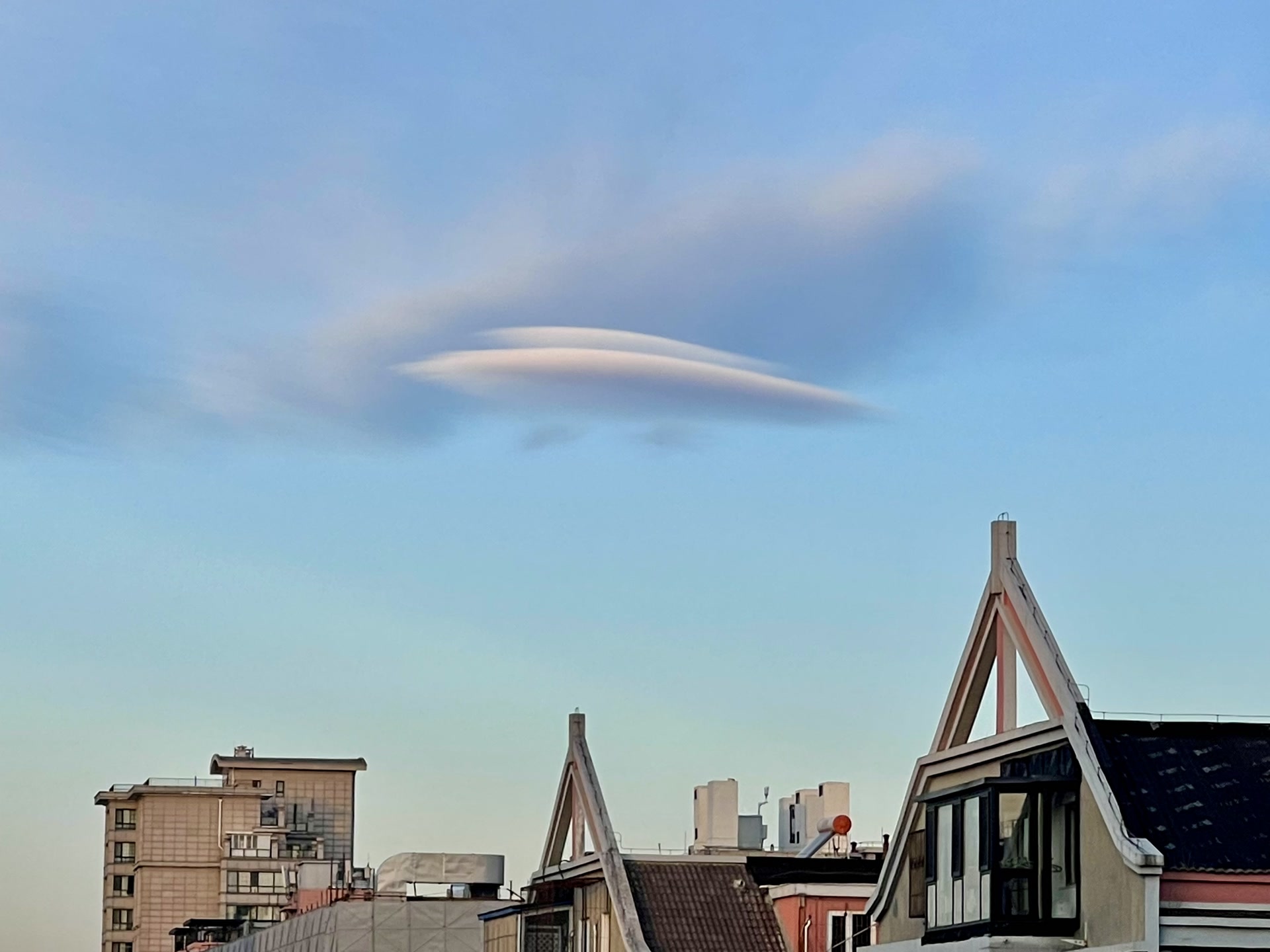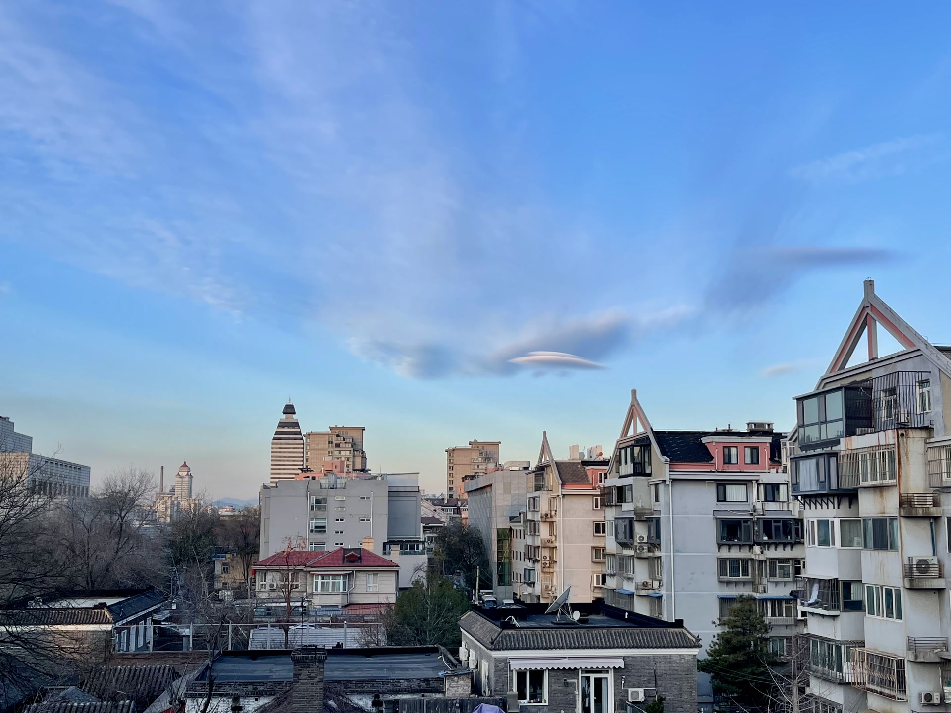今晨,北京的天空中惊现神秘的“飞碟云”。