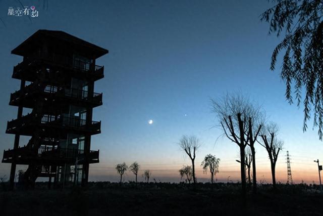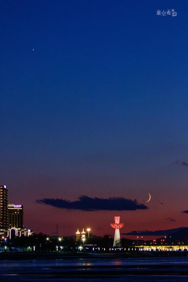 由于金星和月牙都非常明亮,这幕“星月童话”非常适合普通公众肉眼欣赏和拍照。夕阳余晖中,金星和月牙好似一对恋人,时而喃喃低语,时而深情对望。
