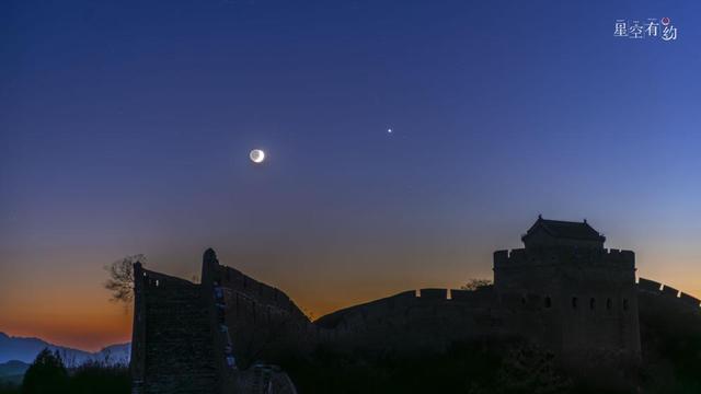 月球在“巡天”过程中,常常会从行星和黄道附近的一些亮恒星旁边经过,形成亮星伴月的天象。在诸多亮星伴月的天象中,金星伴月特点鲜明:只出现在日出前或日落后的一两个小时内;月亮的形状永远是一个小月牙儿;二者的亮度比较匹配,观赏效果好,赏心悦目。