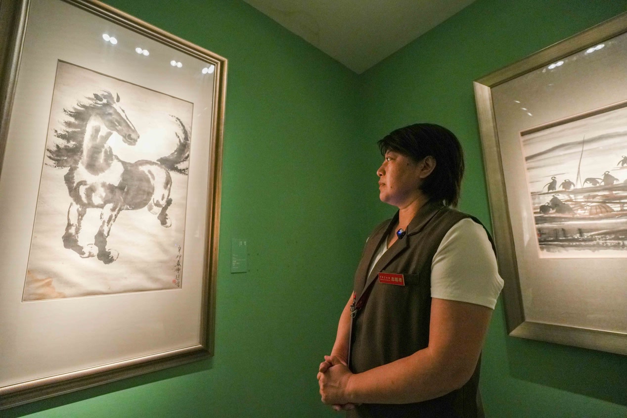 2024年4月的一个周末,下午2点,身着志愿者马甲,手持讲解话筒,于阳准时出现在中国美术馆5层展厅门口,她的身后还跟随了30多位观众,这些都是她多年的“老粉”。