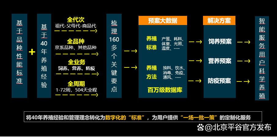 “京系列蛋鸡养殖预案数据集”,是基于蛋鸡品种性能标准和行业40多年养殖经验,针对养殖全品种、全代次、全周期、全业务而生成的全程性、专属性、数字化管理方案,总计涵盖4906151条数据。系统会根据用户不同,专属形成”一场一批一策“管理预案,并进行智能推送,服务全国养殖场用户科学管理。