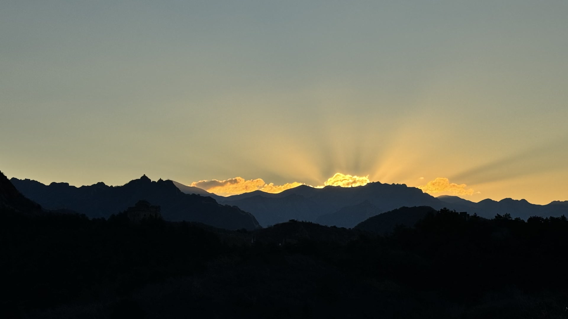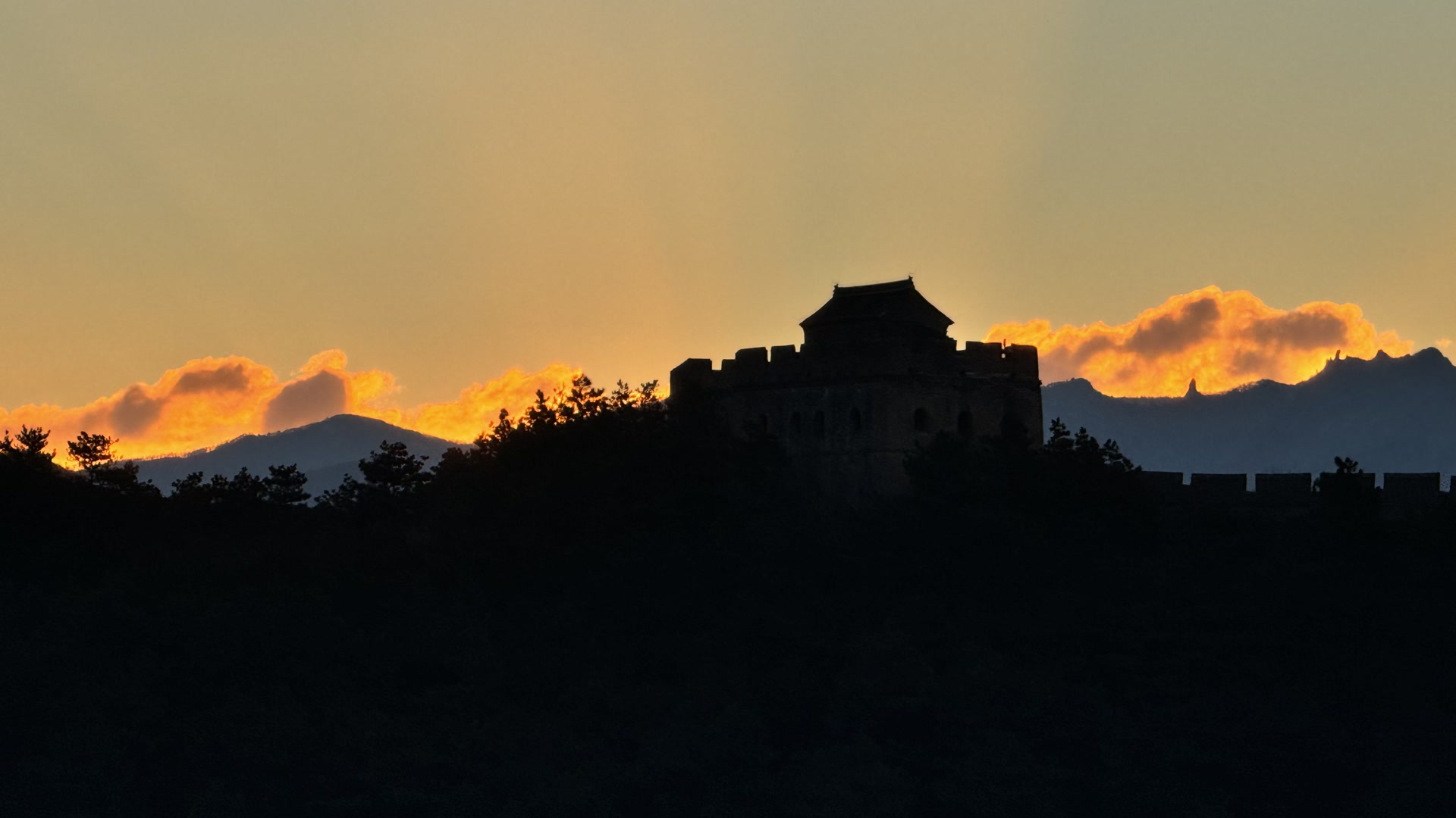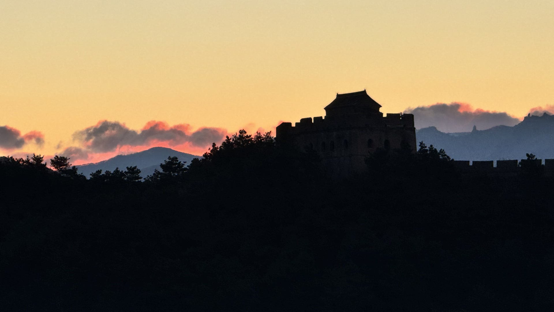 12月5日,清晨,河北省承德市滦平县金山岭长城,日出朝霞美如画,与长城遥相辉映。
