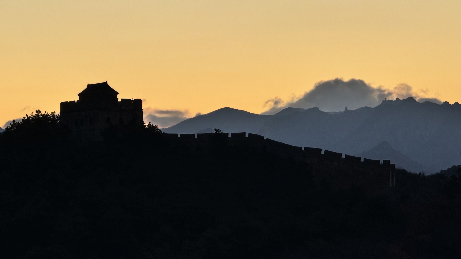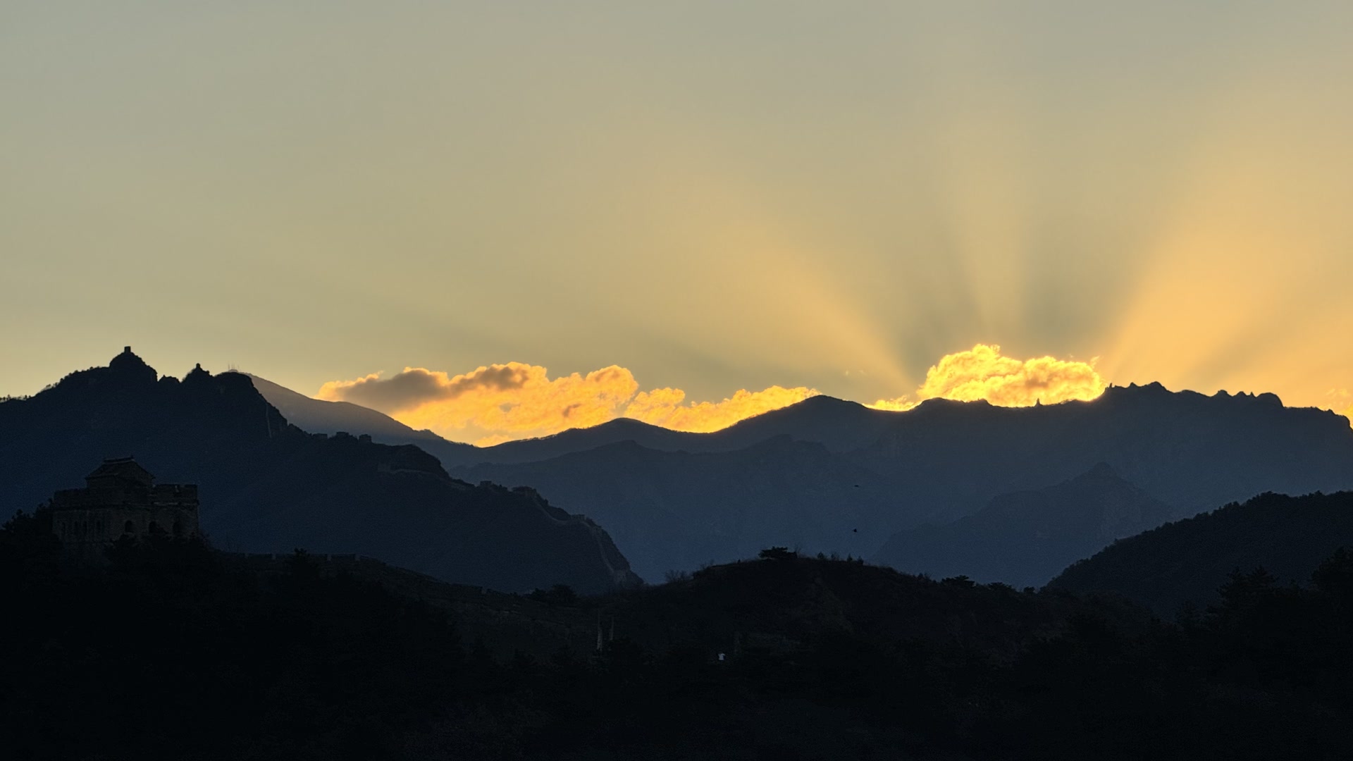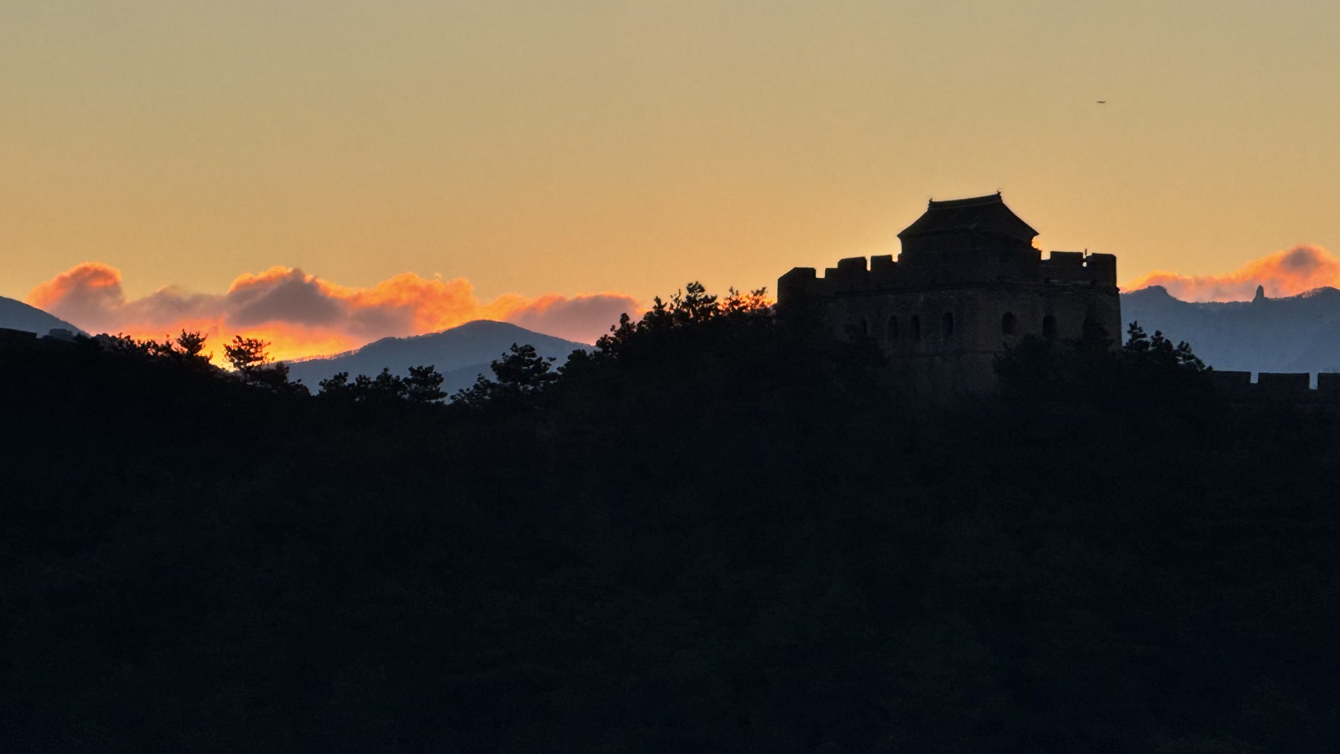 12月5日,清晨,河北省承德市滦平县金山岭长城,日出朝霞美如画,与长城遥相辉映。