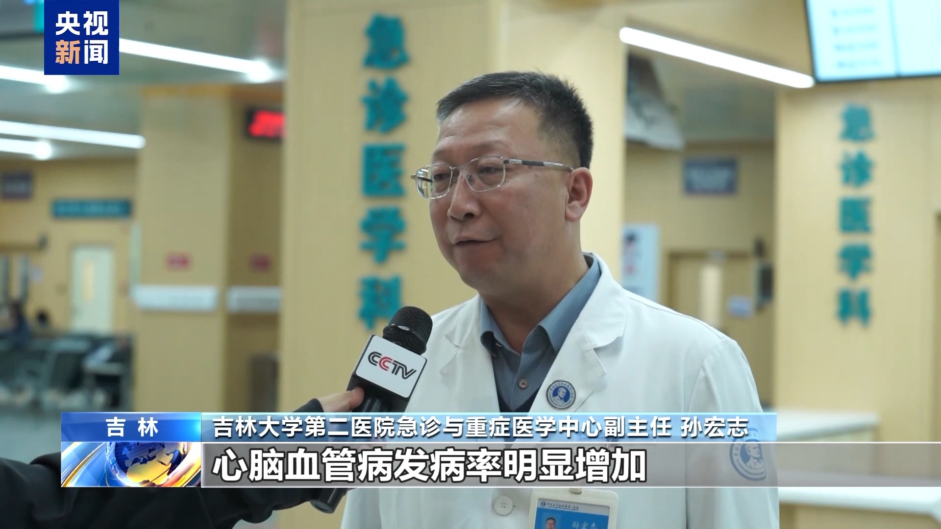 吉林大学第二医院急诊与重症医学中心副主任 孙宏志:温度骤降以后,心脑血管病发病率明显增加,近一个月脑卒中的患者明显增加,增加了20%到30%。