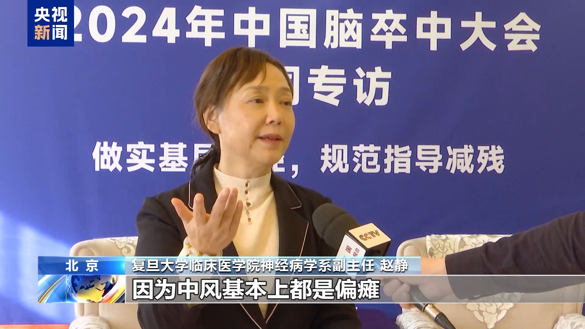 复旦大学临床医学院神经病学系副主任 赵静:有一个中风120三步法,“1”看脸,一侧的脸歪了,“2”查两只手,单手不能抬了,因为中风基本是偏瘫,“0”就是聆听一句话,说不清说不明白了。三个任何一个突然发生都有可能是中风。