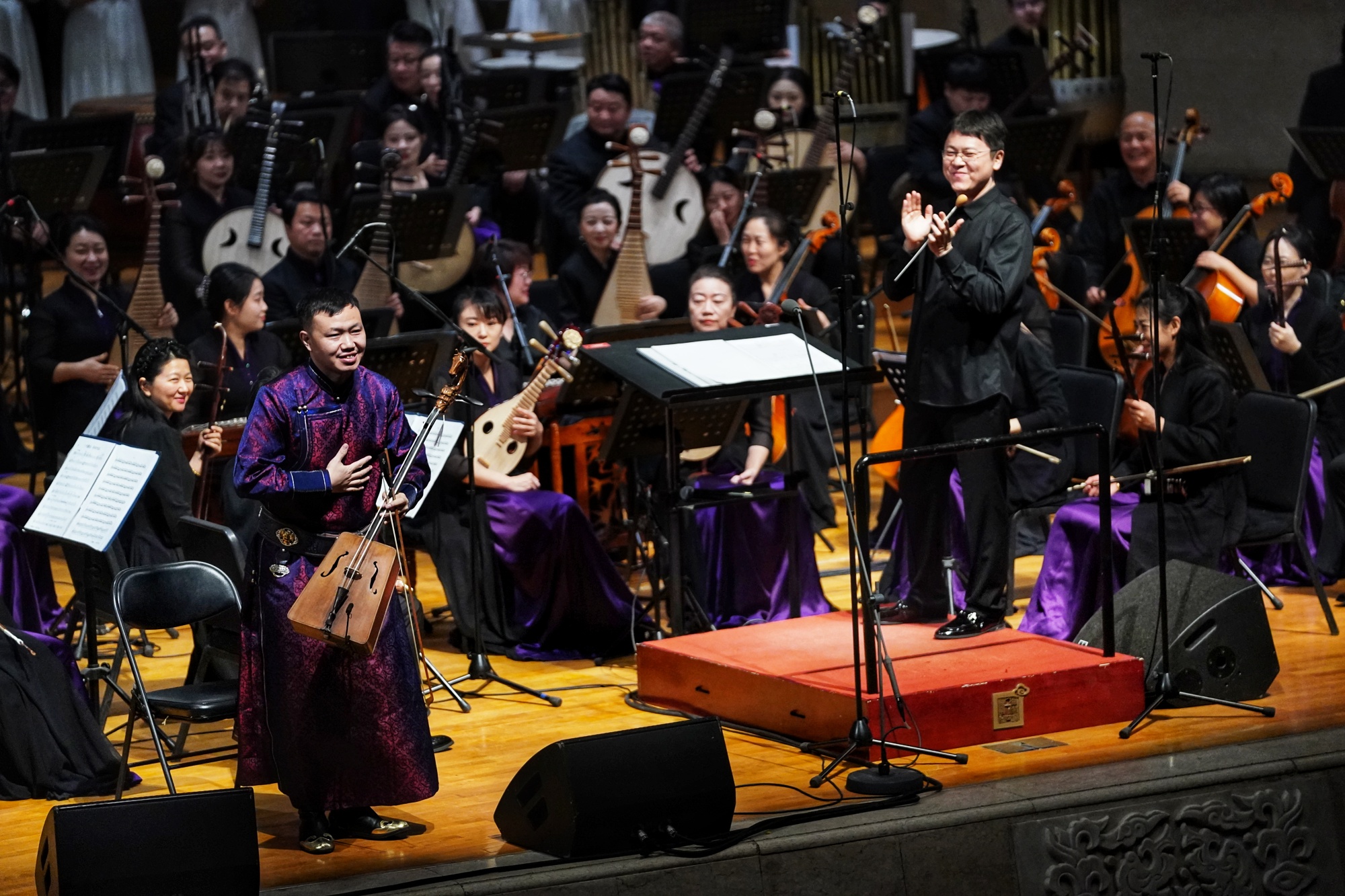 12月5日,由北京中艺艺术基金会主办的“爱乐传习——中艺名家进校园·在剧场感受艺术魅力”之大型民族管弦音乐会《大河九曲》公益专场在北京中山公园音乐堂举行。