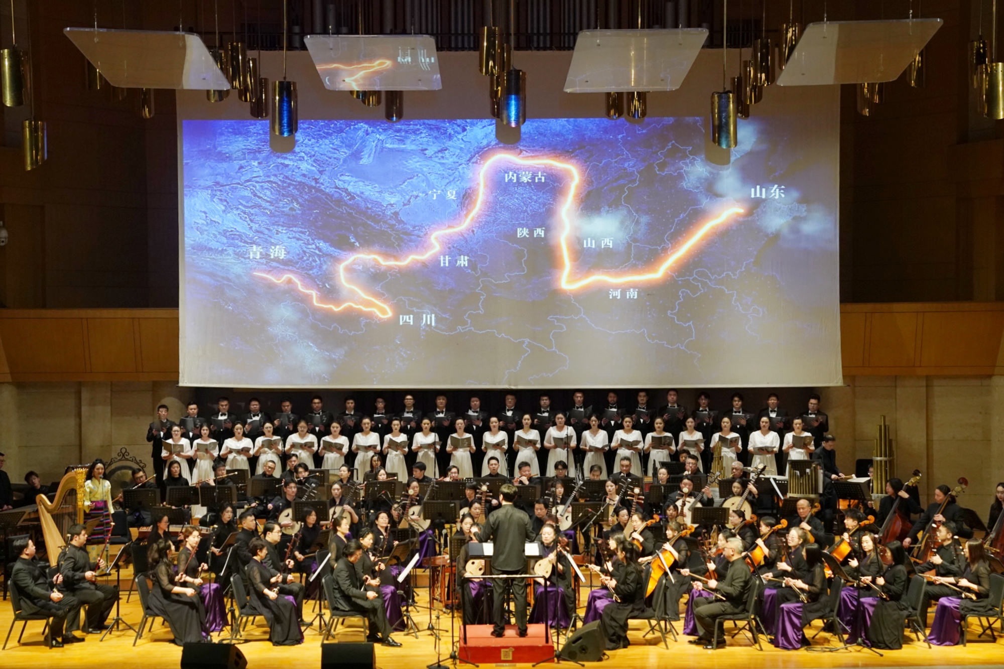 李白的诗歌“黄河之水天上来”中描绘过黄河;冼星海的作品《黄河大合唱》中谱写过黄河;民歌“天下黄河九十九道弯”中歌唱过黄河。此次音乐会《大河九曲》带领观众的思绪沿着黄河流经的九个省和自治区,聆听和感悟华夏儿女热爱与眷恋的“母亲河”——黄河,全景展现黄河流域多彩音乐文化的优美画卷。