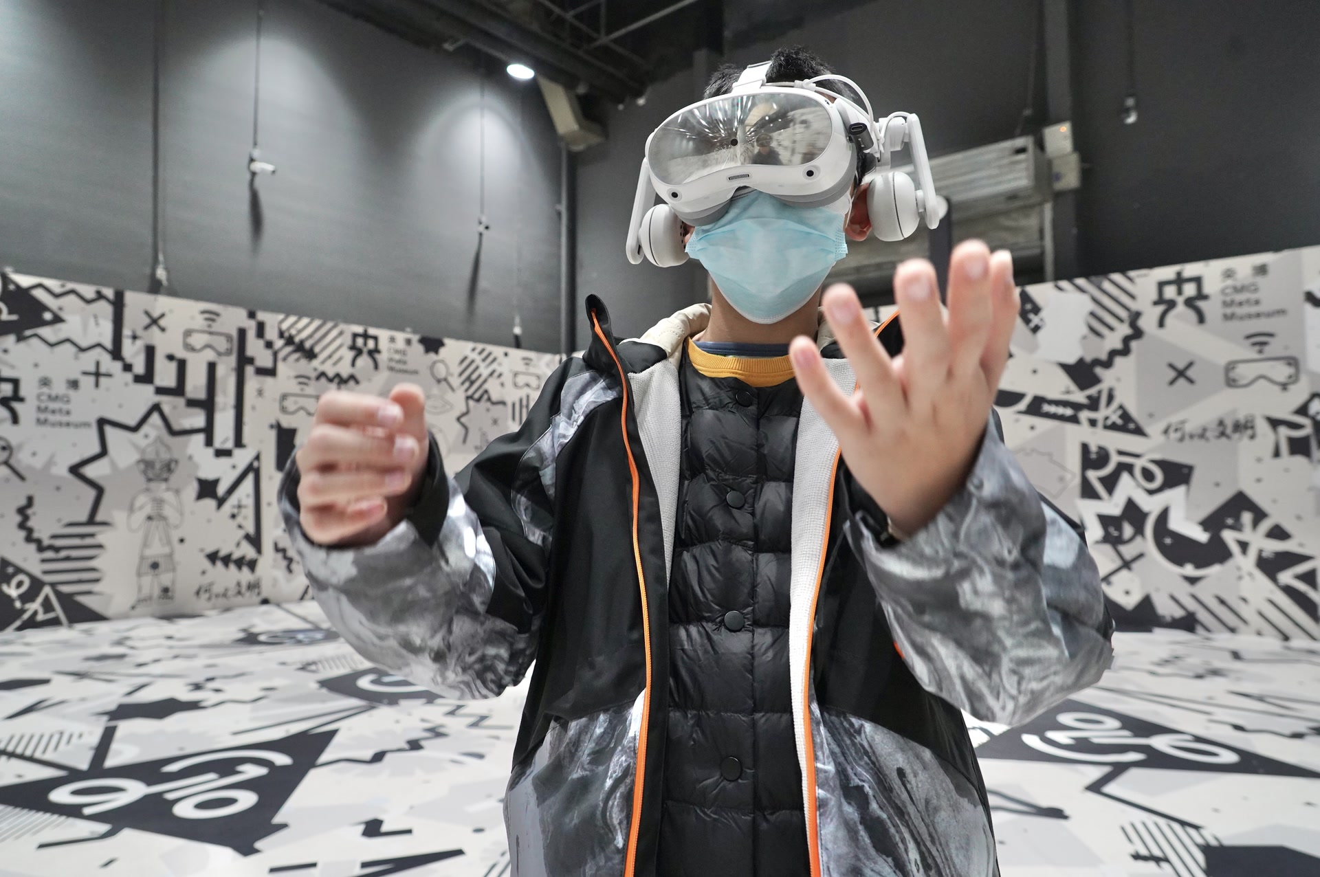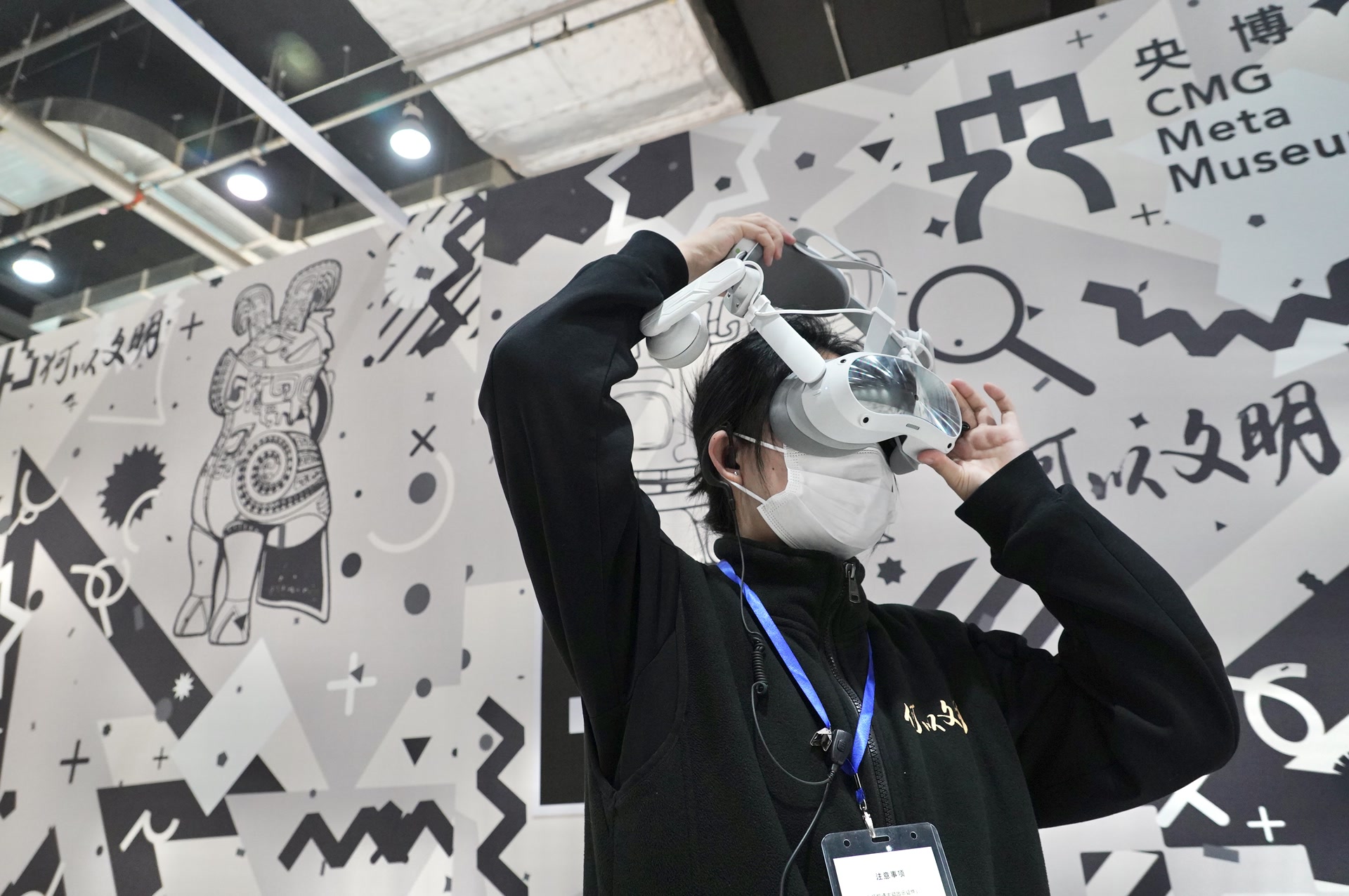 展厅内,两大虚拟现实(VR)沉浸探索展区最吸睛。观众戴上眼镜,就可以开启精彩的时空之旅。其中,《何以文明》VR沉浸探索展区通过一个个生动的小故事,将不同文明遗址串联起来,带领观众走进历史传奇;《奇遇三星堆》VR沉浸探索展区带观众探访匠人村落、走进祭祀典礼,沉浸式感受古蜀文化的瑰丽奇观。“展示的内容以中华文明探源工程成果为主要依据,场景涉及的人物服装、建筑布局、生态环境等都经过了严格的考证。”张淼说。