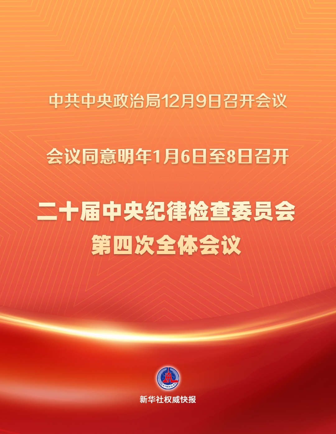 会议同意明年1月6日至8日召开二十届中央纪律检查委员会第四次全体会议