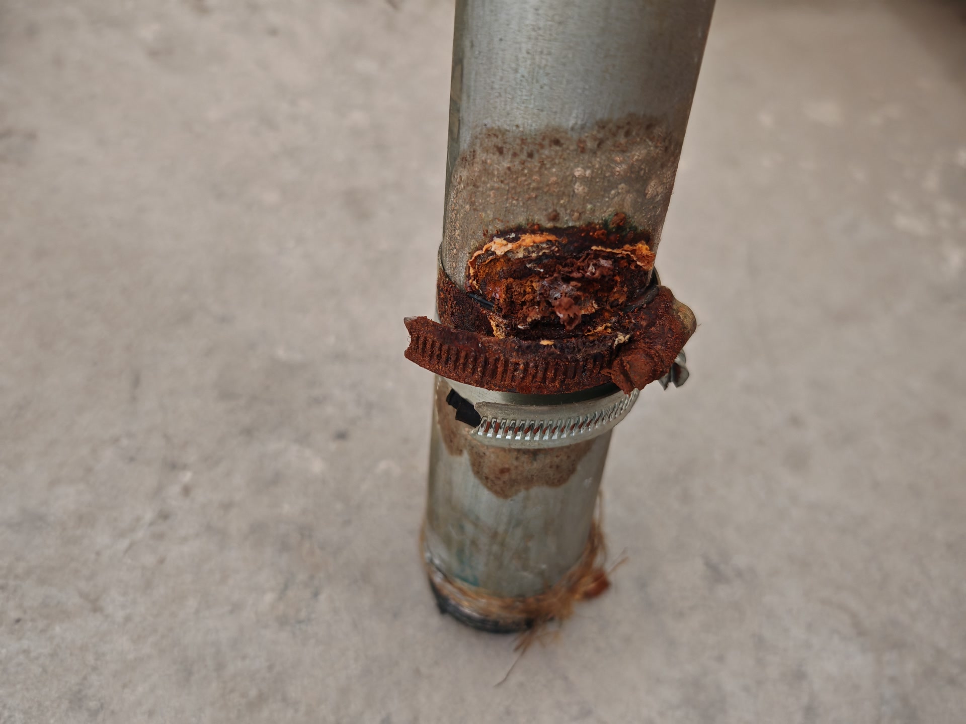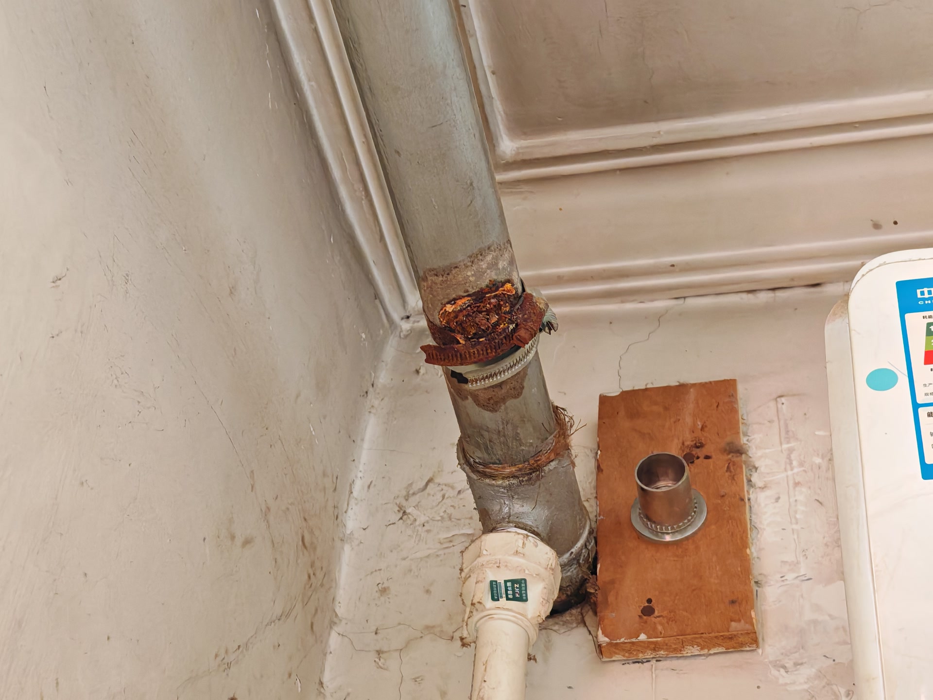 漏水点在王大爷家的卧室里。“旁边有柜子遮挡,我们也不知道它漏了多久了,直到早上才发现的。”王大爷担忧地说:“多年前这处管道就出现过漏水,当时是用金属卡扣卡住了,4年前,同样的问题又出现了,也是用卡扣卡住了漏点,这已经是管道第三次出现相同情况。”