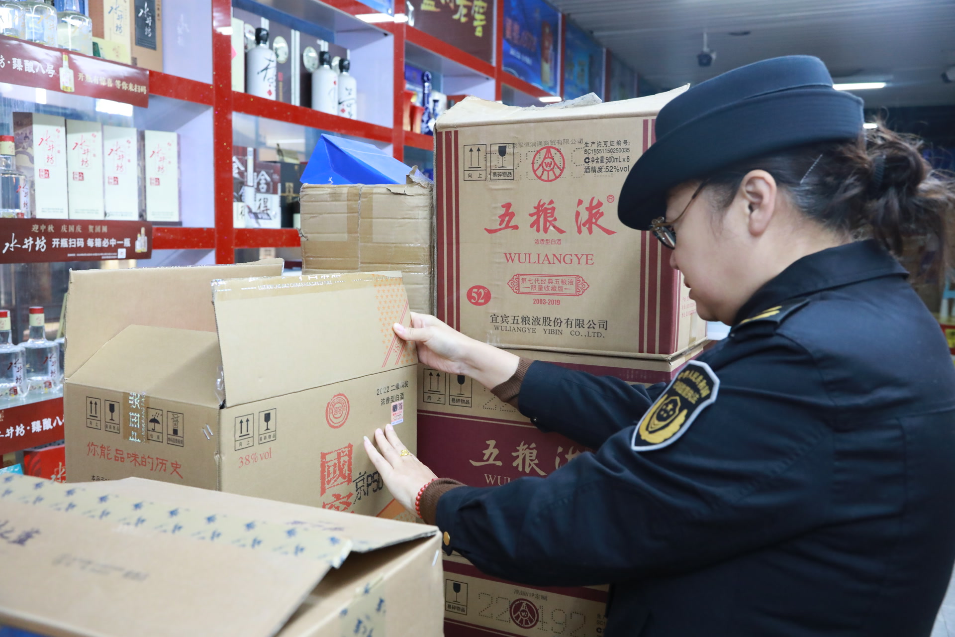 临近岁末,酒类、糖果等商品进入消费旺季。为进一步净化市场环境,保障消费者合法权益,近日,海淀区市场监管局根据线索,联合知名白酒商标权利人深入锦绣大地农副产品批发市场和中关村街道烟酒产品专营店,开展打击侵权假冒商品专项执法行动。检查中,执法人员共发现假冒五粮液等两个品牌白酒8瓶,已当场查封扣押。