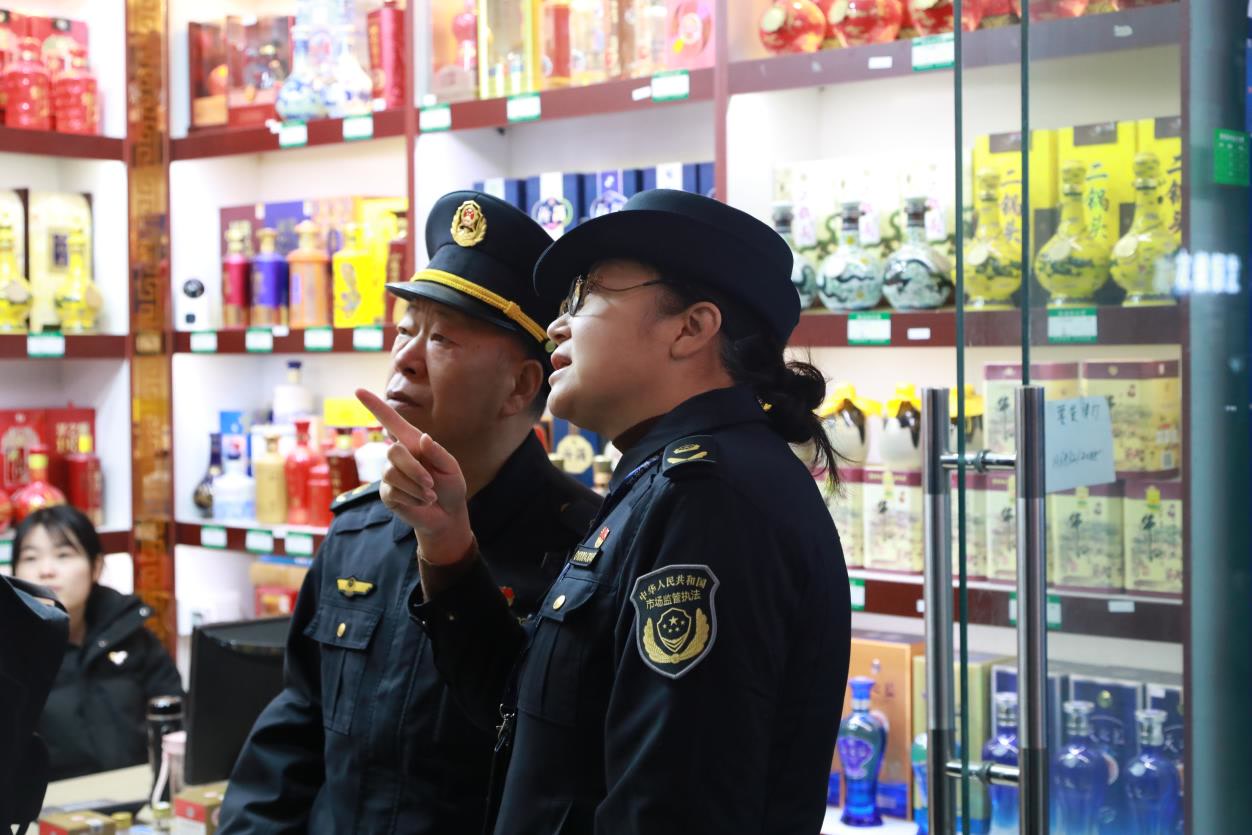 专项执法行动中,执法人员结合点位实际情况,通过“明查+暗访”的方式,重点检查商品包装细节、防伪标识真伪,商标标识标注、商标授权、进货渠道等内容,甄别商品是否存在侵权问题。执法人员共检查经营主体40余家,发现涉嫌销售侵权假冒白酒商铺两家,涉及五粮液等2个品牌白酒8瓶,执法人员当场对涉案物品予以查封扣押。