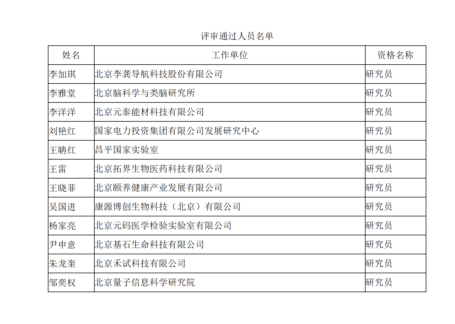 北京市自然科学研究系列高端领军人才研究员直通车评审委员会于2024年11月28日召开会议,李加琪等12人(名单附后)通过了研究员专业技术资格评审。根据《北京市职称评审管理暂行办法》(京人社事业发〔2020〕12号)的规定,经复核,现予以公示。