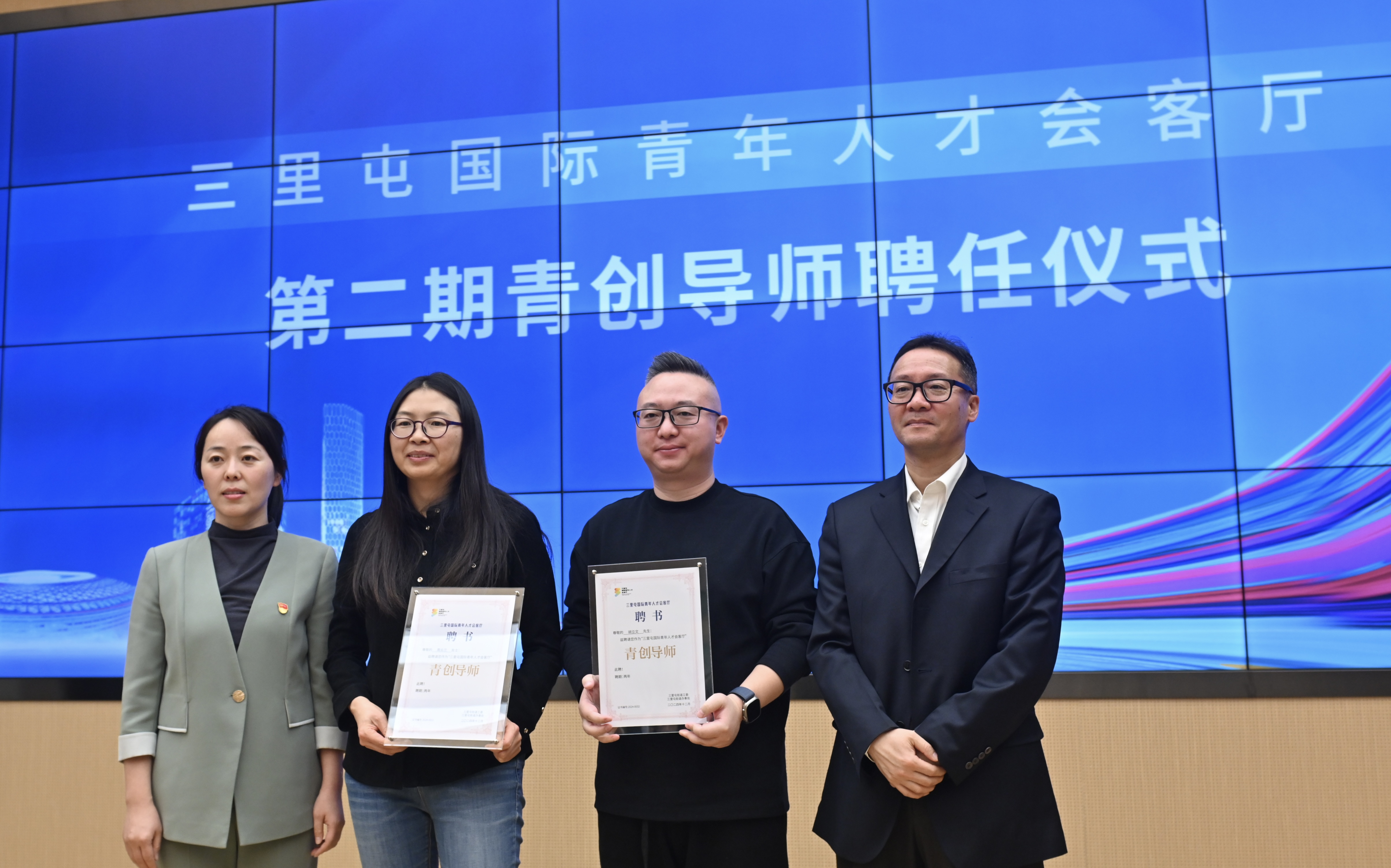 活动举行了三里屯国际青年人才会客厅2024年第二期青创导师聘任仪式,刘德良、周云兰、胡立文三位嘉宾被聘任为青创导师。