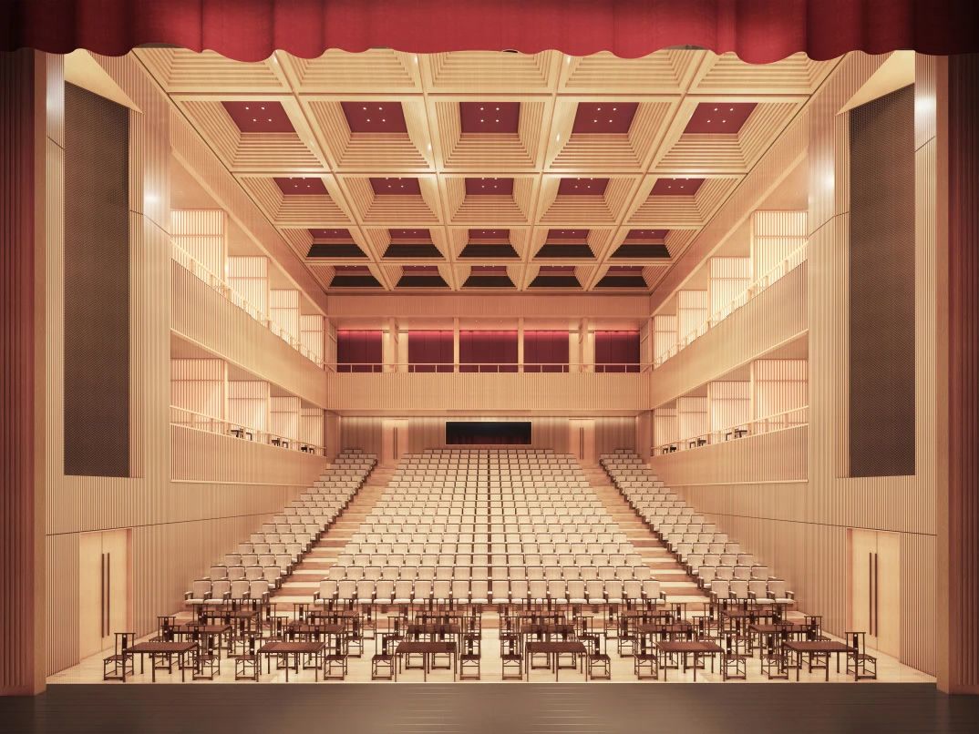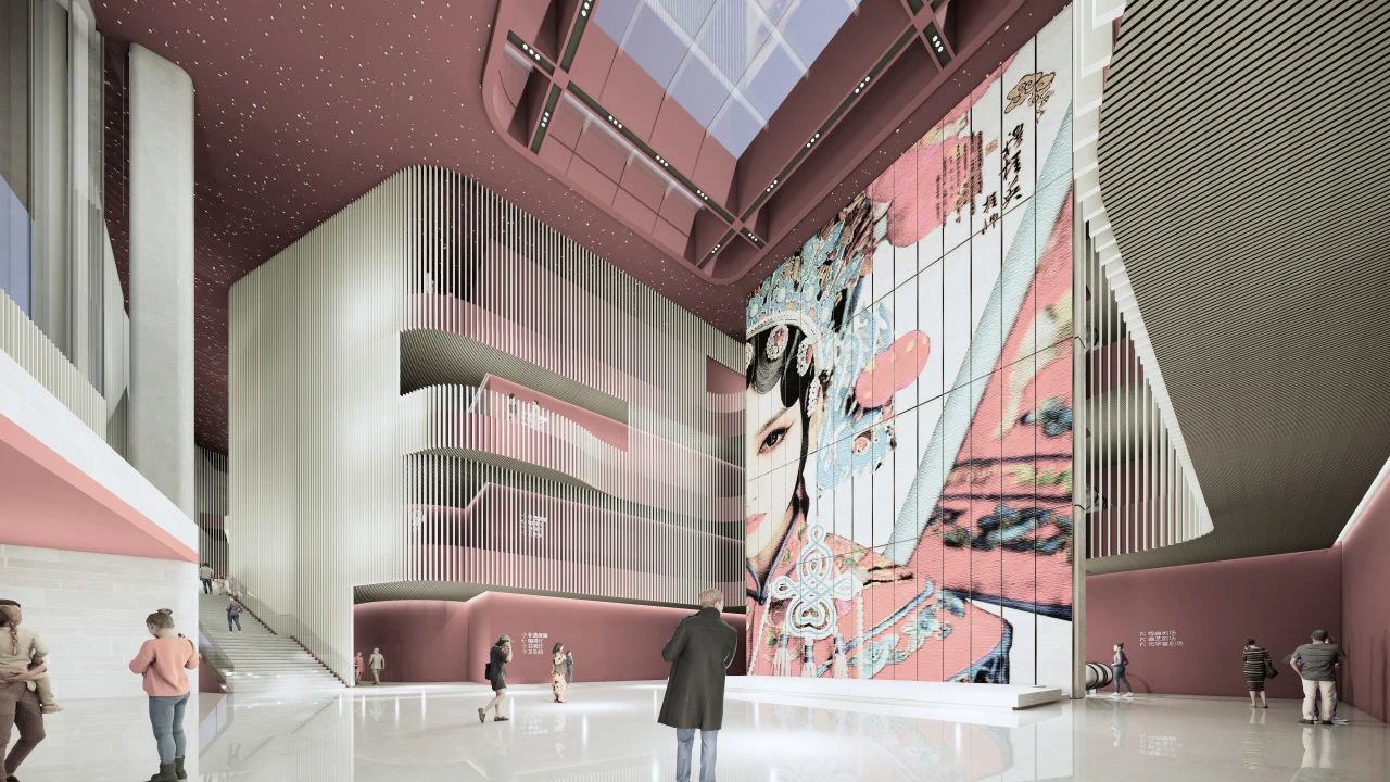 京南艺术中心项目位于大兴经济开发区,用地约1.69公顷,总建筑面积3.648万平方米,包括一个1100座戏曲类中剧场、一个600座曲艺类小剧场,一个400座综合性小剧场。地上4层,地下1层,建筑总高度为32.6米。