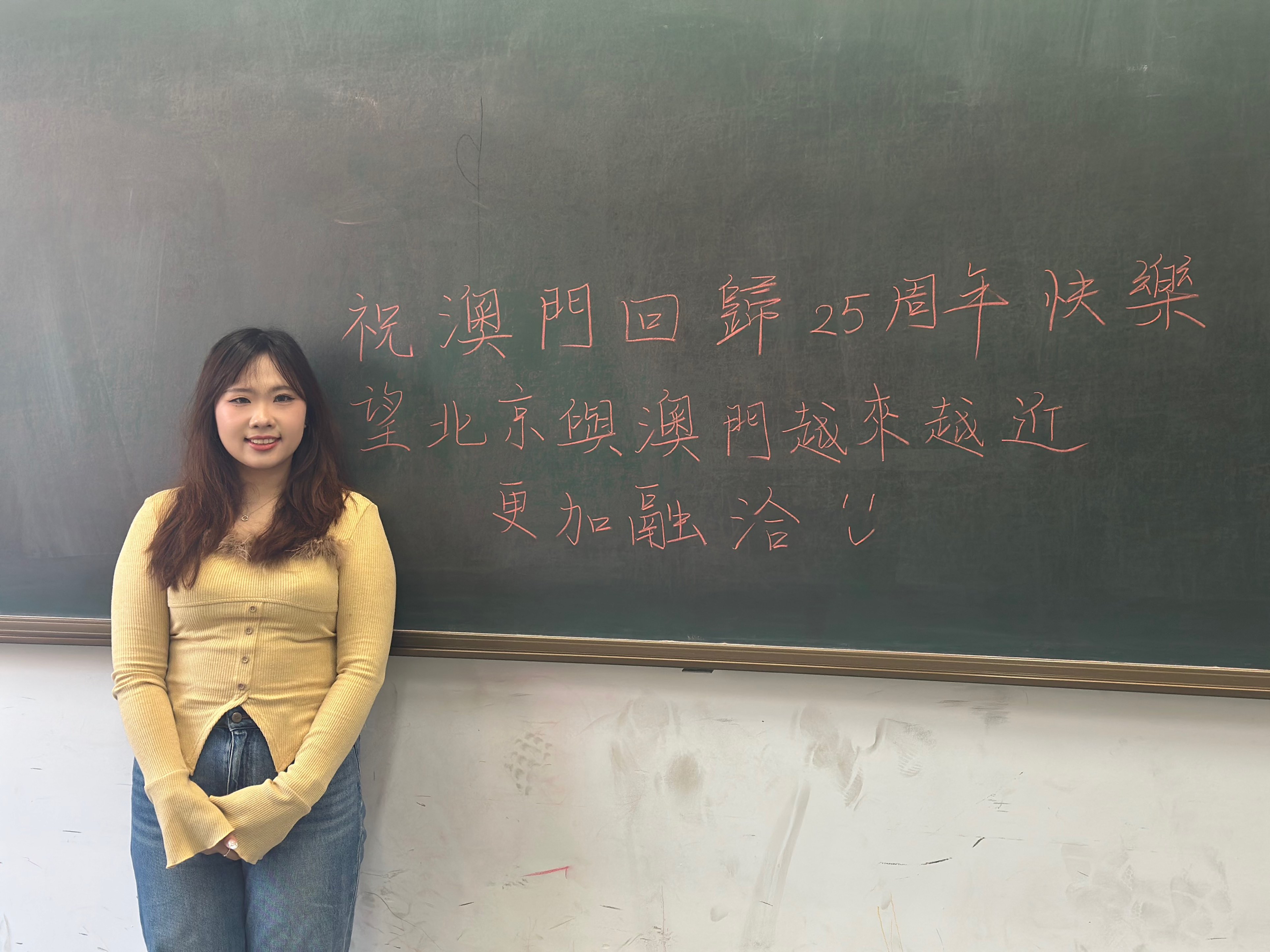 “祝澳门回归25周年快乐,希望澳门的发展越来越好,与北京越走越近,也希望北京作为文化中心,为人们提供更多文化交流的机会。”黄诗雅衷心祝福。