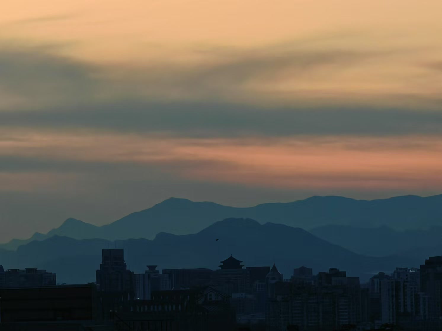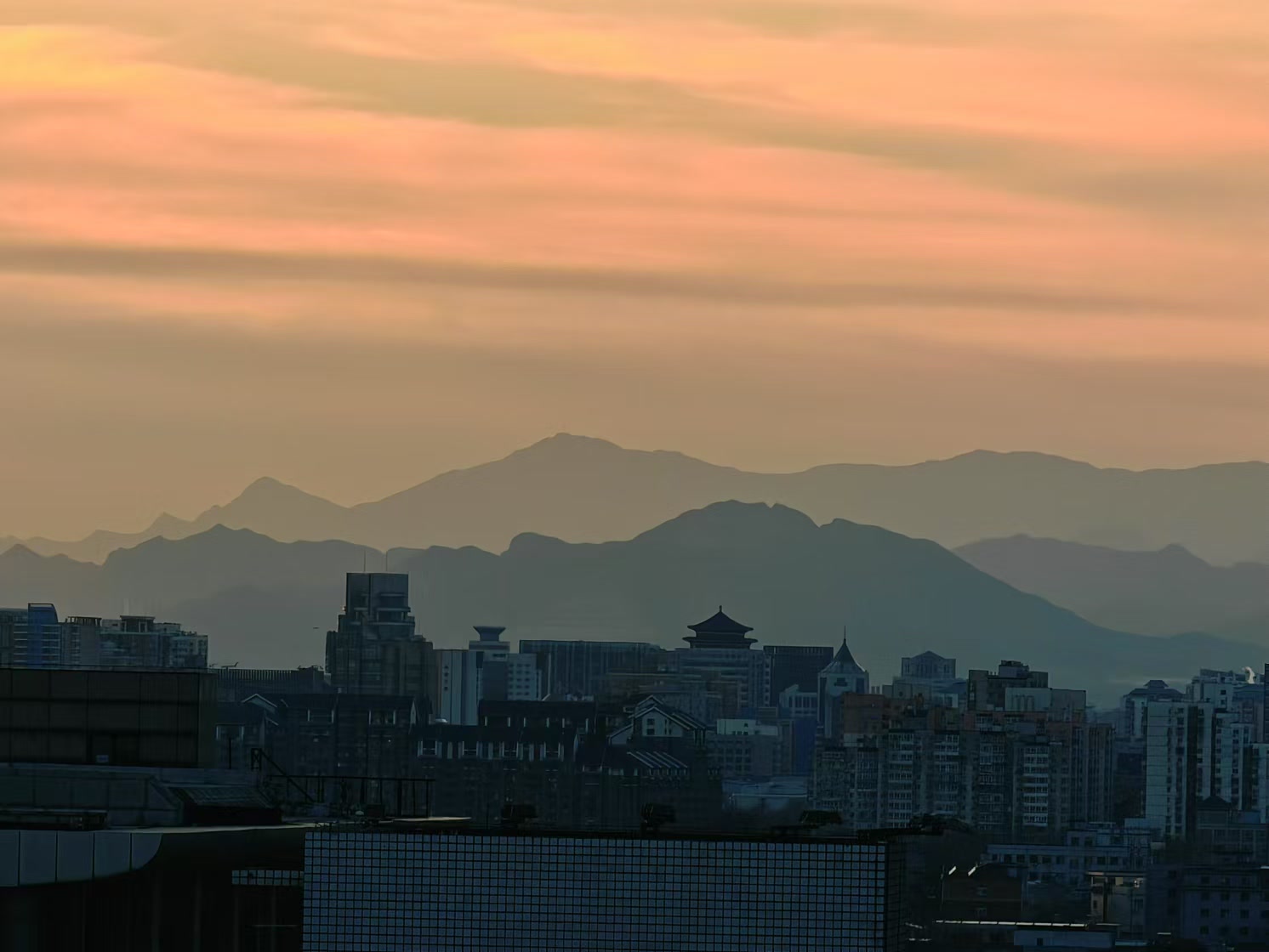 12月18日,黄昏时分,北京渐渐披上夜的纱幔。天际,一抹淡蓝悄然过渡至橙黄,仿佛是时间轻轻挥洒的颜料,由浅入深,绘就一幅温柔的画卷。