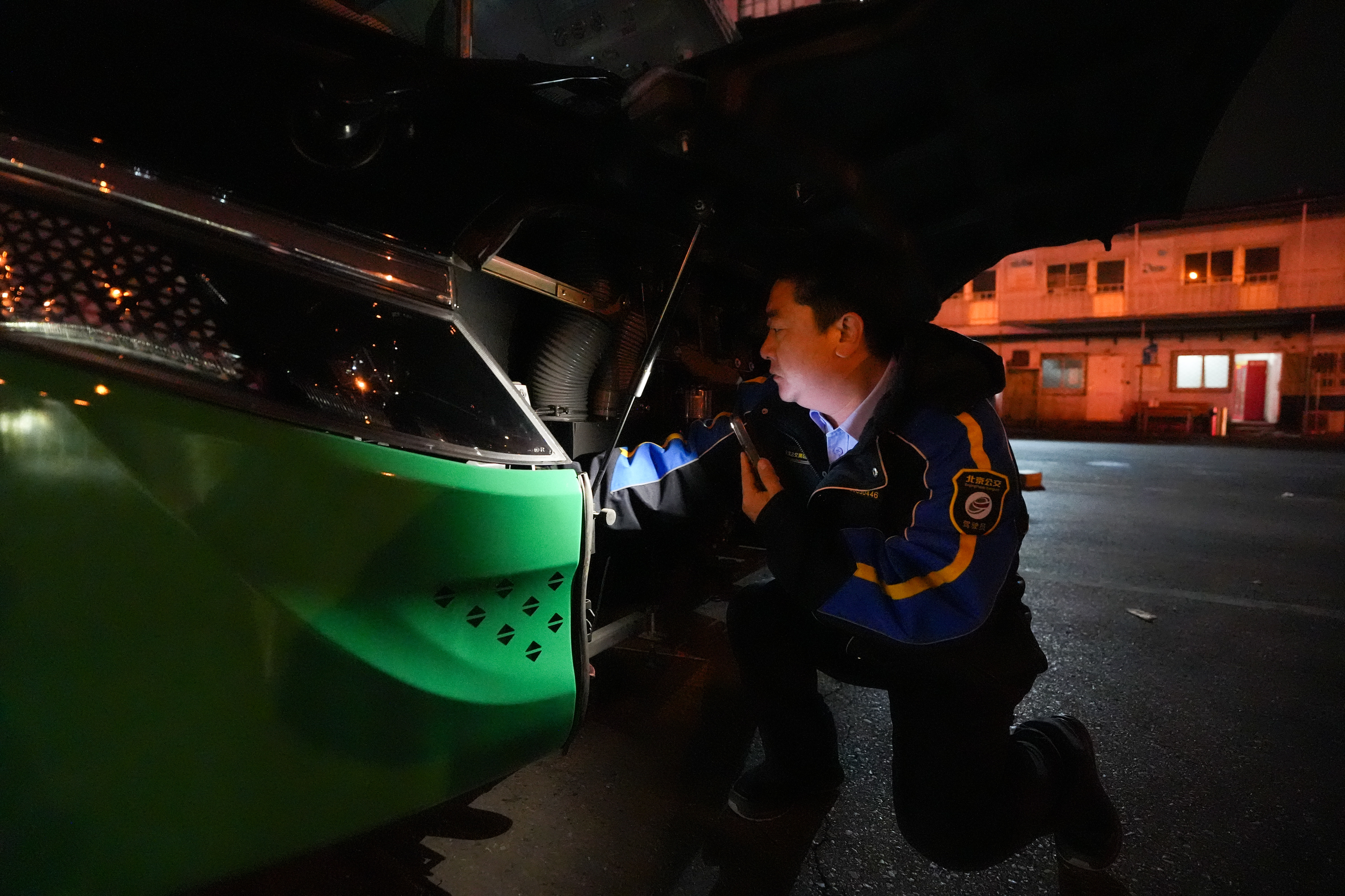 凌晨5点,北京夜幕未褪、呵气成霜。城市尚在熟睡,东大桥公交场站却已点亮。北京公交集团通学368路驾驶员果长义提前到岗,打扫车厢、检查车况、调好温度,等待乘客的到来。