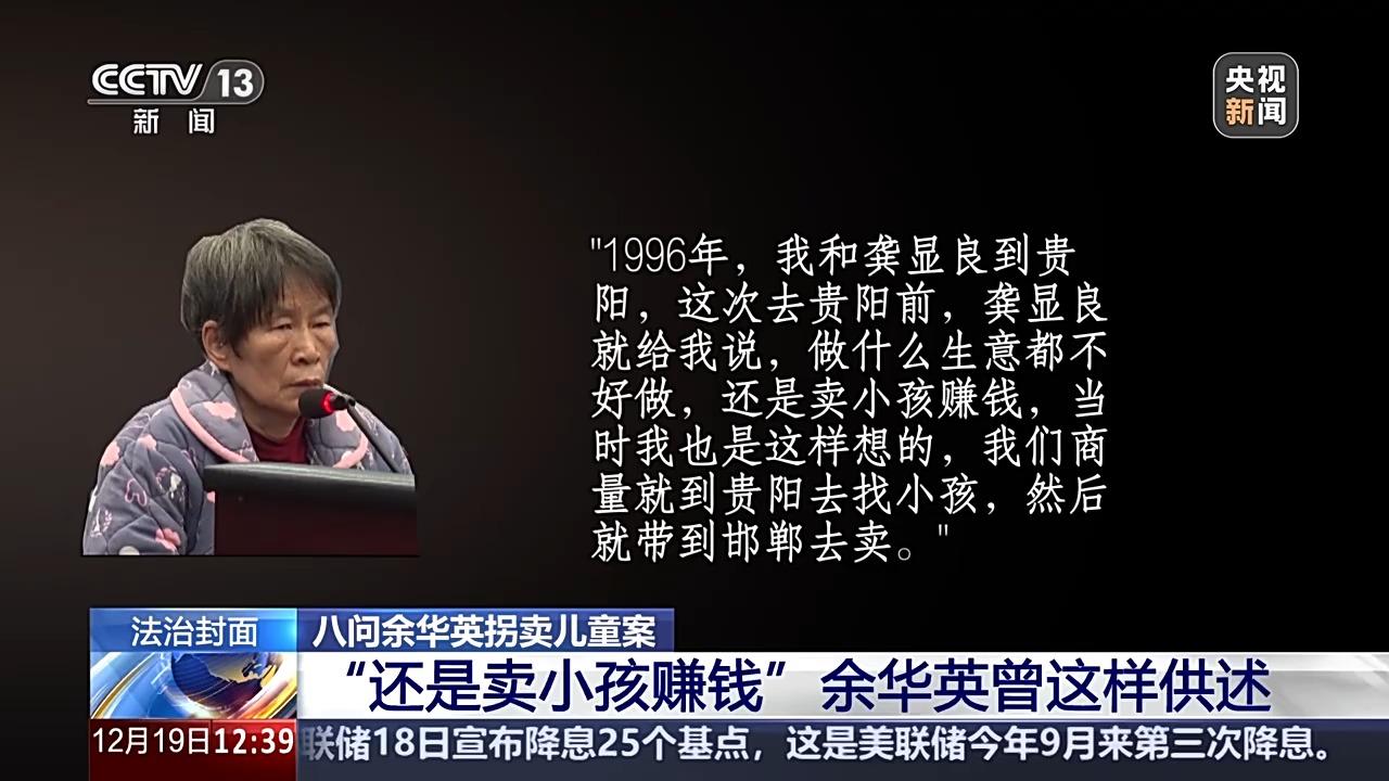 总台央视记者刚刚获悉,余华英拐卖儿童案重审二审宣判,驳回余华英上诉,维持一审死刑判决。