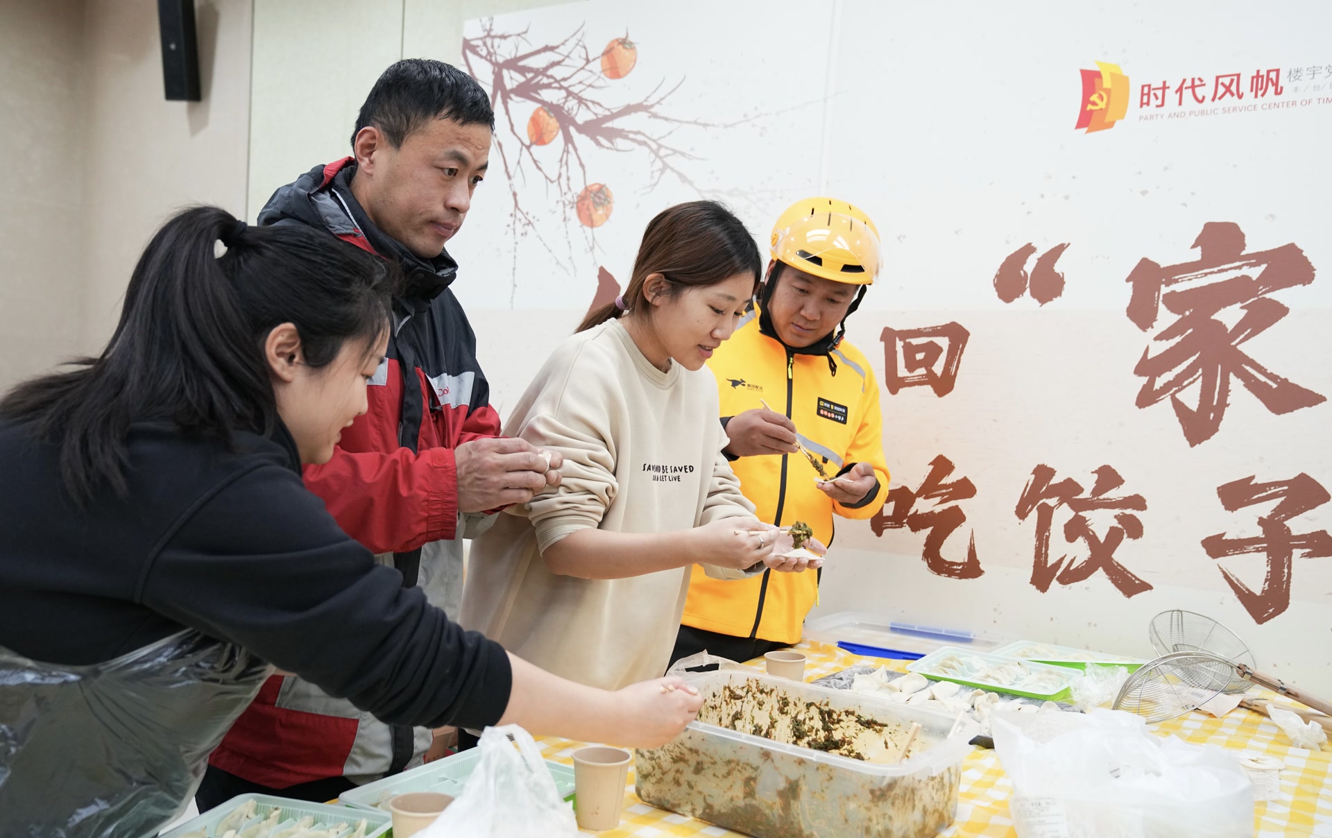 冬至大如年,人间小团圆。12月20日,冬至即将来临之际,丰台区马家堡街道时代风帆楼宇党群服务中心请小哥回“家”吃饺子活动又如约而至。来自顺丰、京东的快递小哥和来自饿了么、美团的外卖小哥约300人齐聚一堂,一起吃饺子唠家常,感受楼宇里的温情。