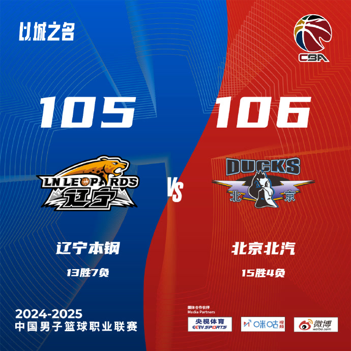 在20日晚的CBA常规赛第20轮比赛中,北京北汽队先输后赢,在客场以106比105战胜卫冕冠军辽宁队。1分险胜,这场胜利来之不易。