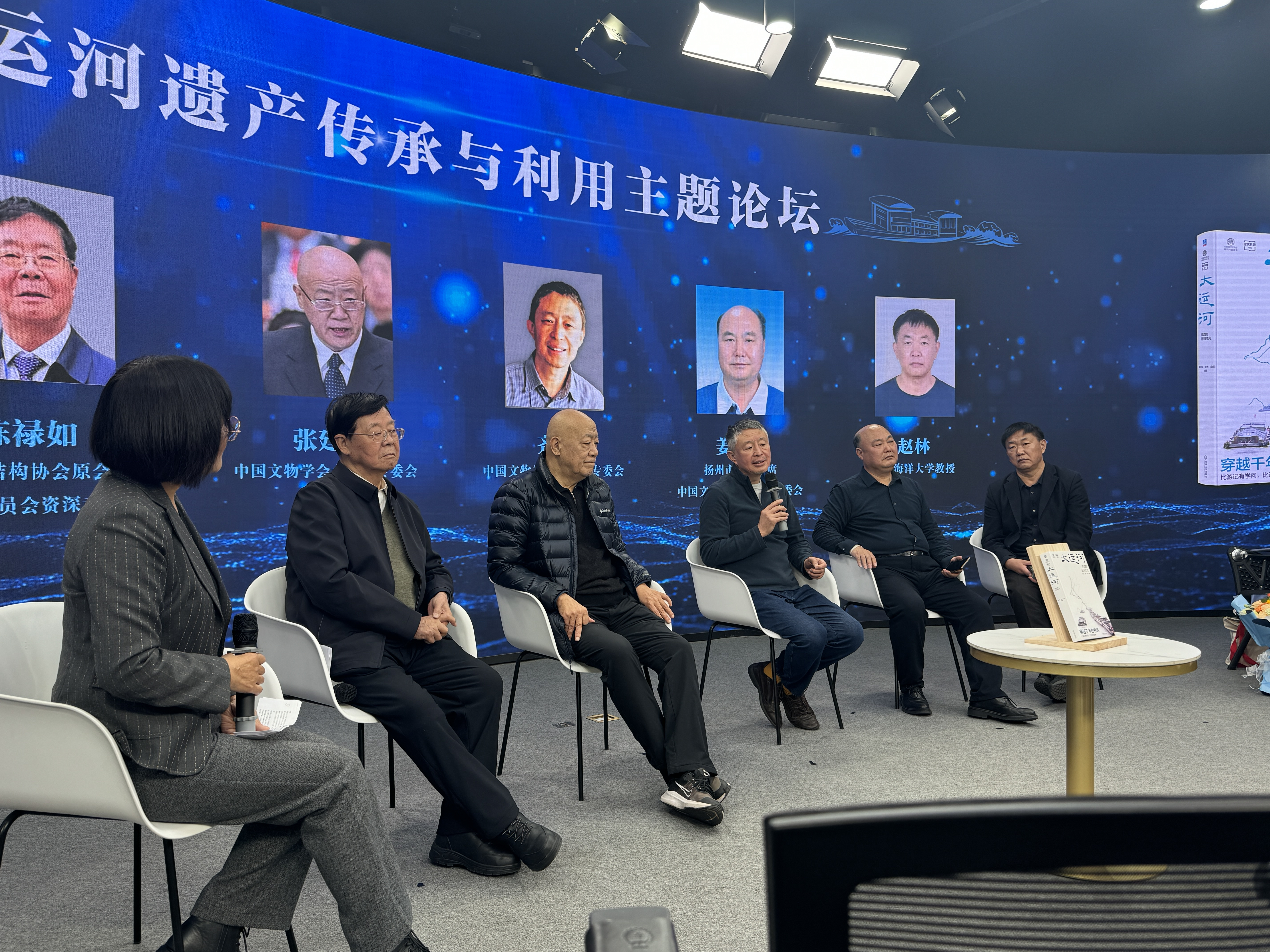 中国文物学会大运河专委会主任委员张廷皓,中国钢结构协会会长陈禄如,中国文物学会大运河专委会副秘书长齐欣,扬州市文联主席、中国文物学会大运河专委会副秘书长姜师立,中国海洋大学教授赵林,就“大运河遗产传承与利用”这一主题展开对谈。他们就大运河申遗成功后,大运河遗产及其城市在平衡保护与发展过程中的问题和机遇;大运河遗产传承与利用中的民众参与问题;大运河文化保护传承利用的协同性问题;大运河遗产的科技价值与民众科普以及运河科技与文化的结合等话题进行了深入讨论。