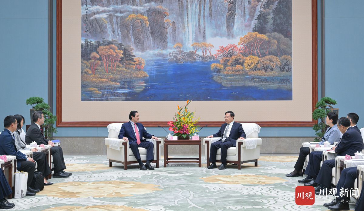 马英九感谢四川省对此次参访的热情接待。他表示,两岸同胞血浓于水、同气连枝,台湾与四川历史渊源深厚、交流交往密切,愿推动两地进一步加强各领域特别是青年之间的交往合作,增进两岸同胞福祉,助力两岸和平发展。