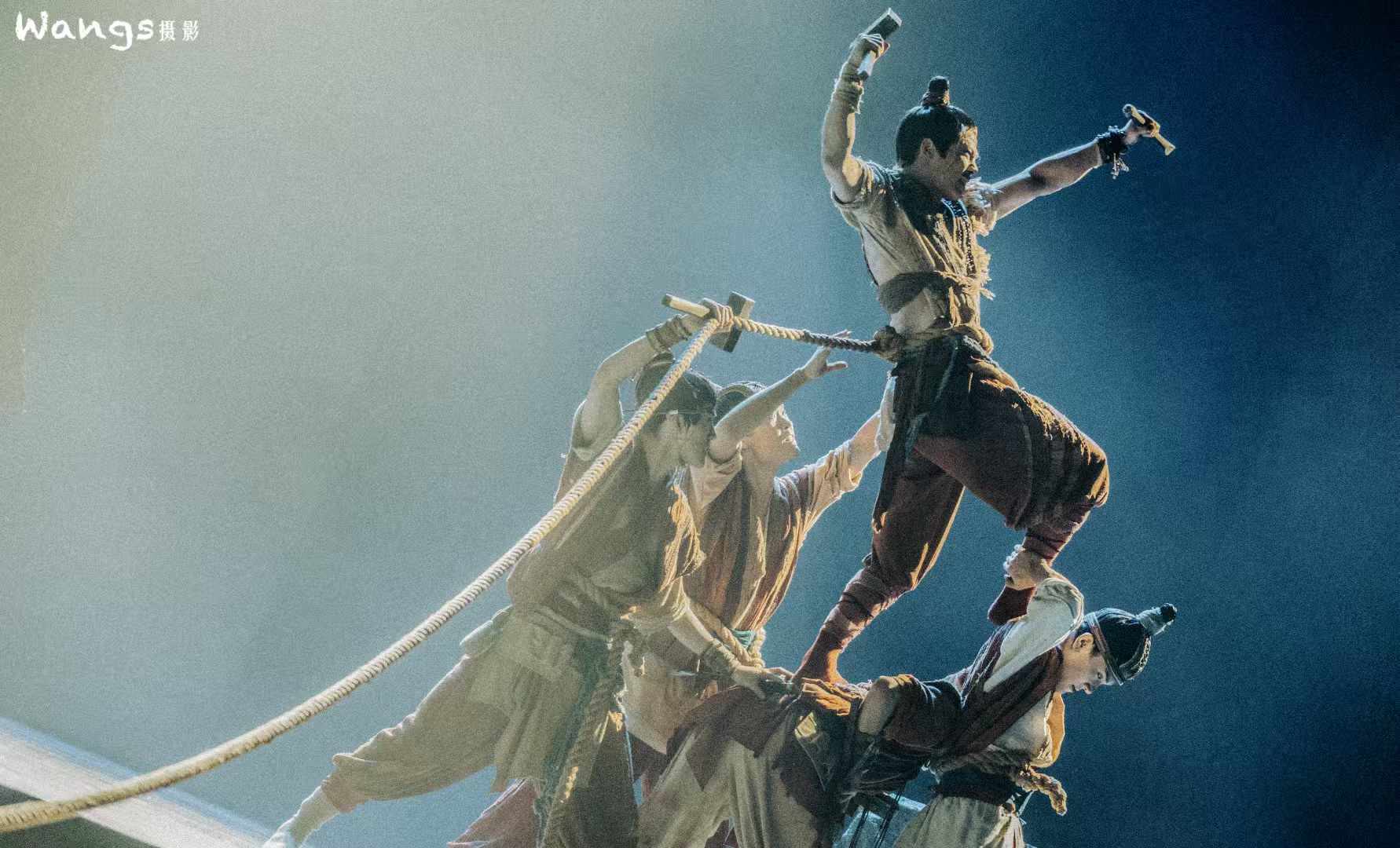 不同于《只此青绿》是舞蹈诗剧,《天下大足》是故事线清晰的舞剧作品。南宋时期,张翰饰演的小福因躲避战乱逃至大足境内,被生活在山崖下的工匠们所救,小福因此与石刻结下不解之缘。经过夜以继日的苦练,他的诚心打动了大匠师,被收为义子悉心教养。然而山河动荡,一场雨夜的灾难降临,那些平凡的工匠们用生命守护了石刻群,永眠在崖壁脚下。为了他们,小福决心以山为册、化刃为笔,刻石留名,令其万世不朽。