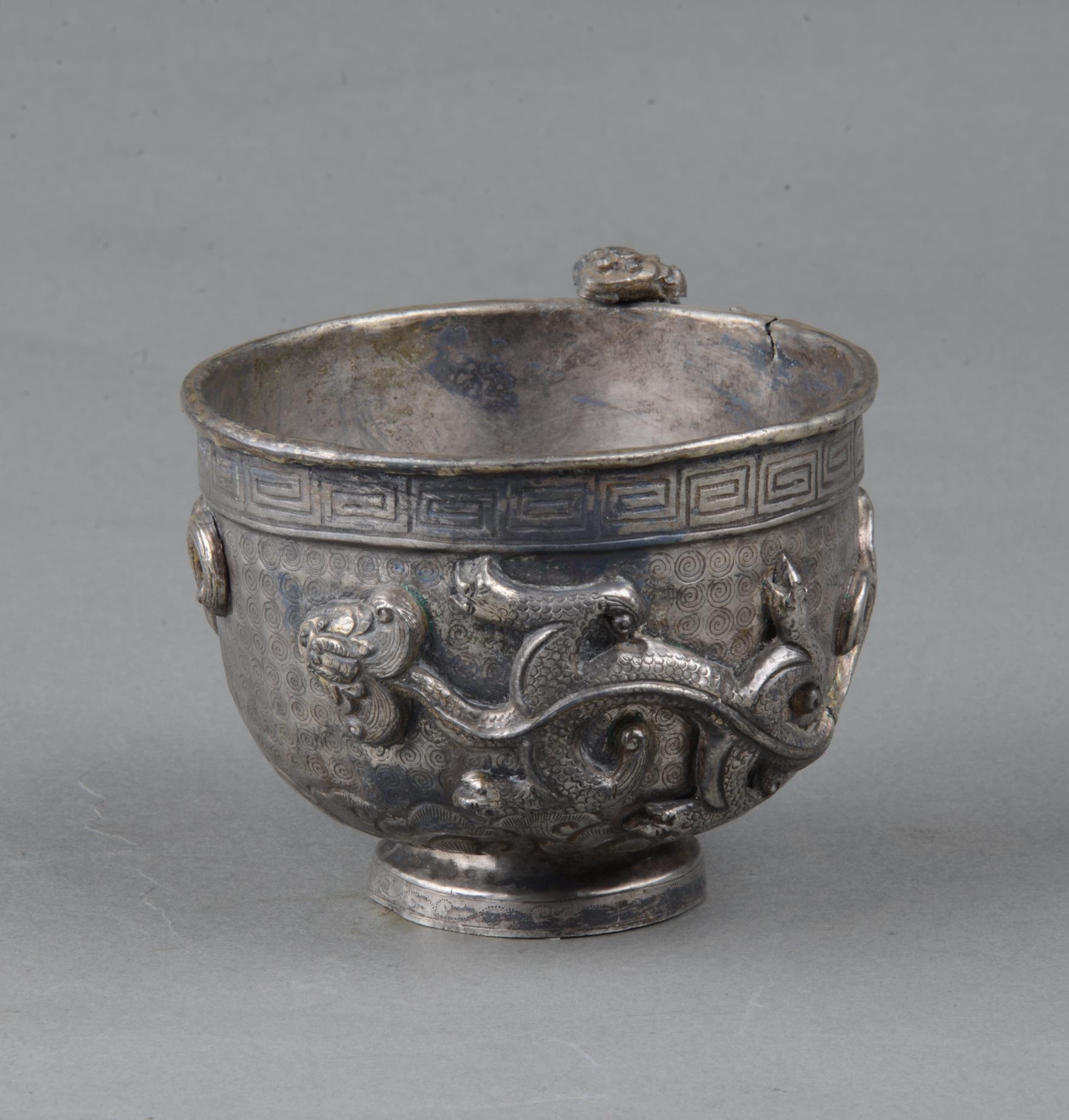 装饰龙纹的夹层银杯