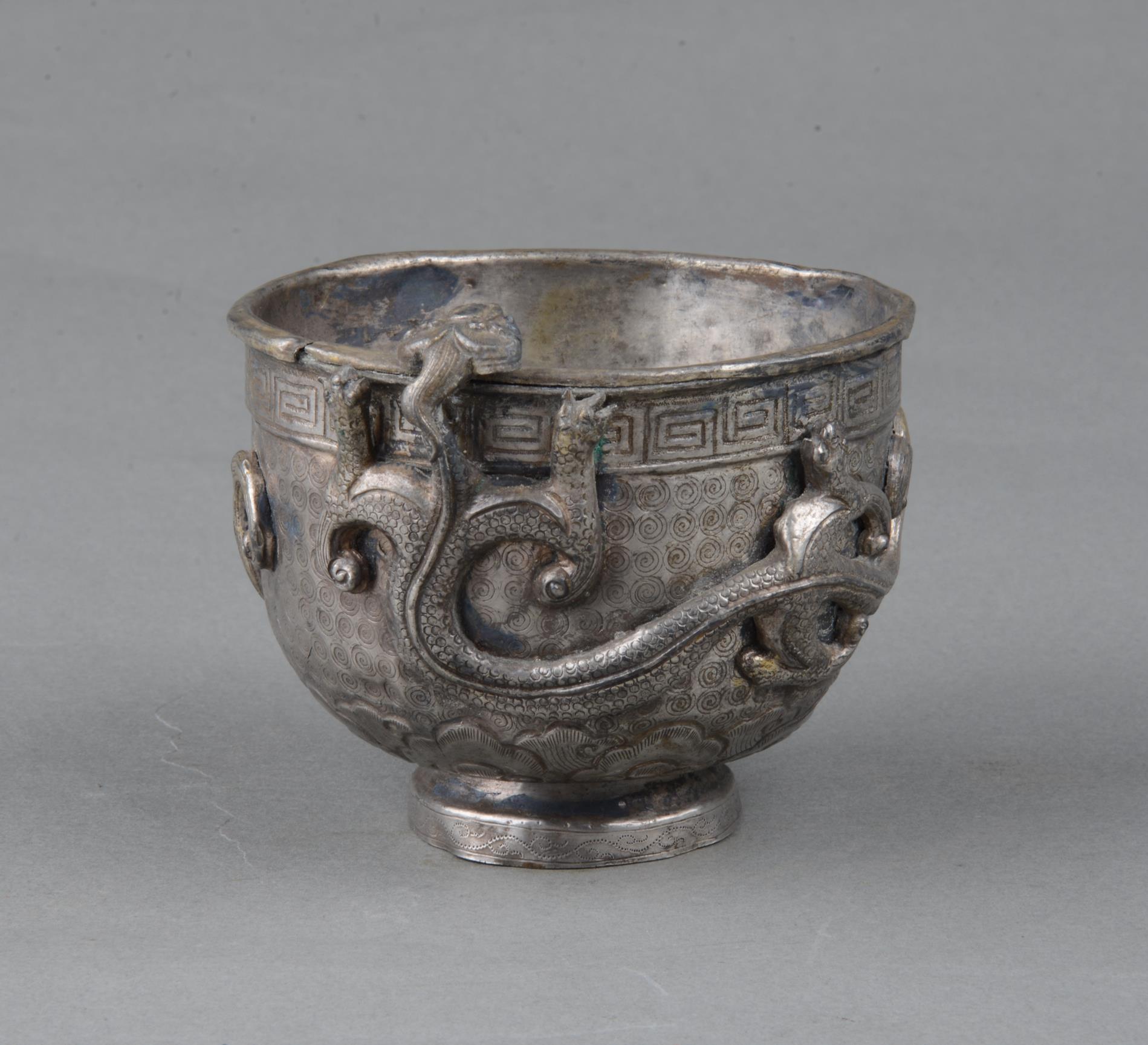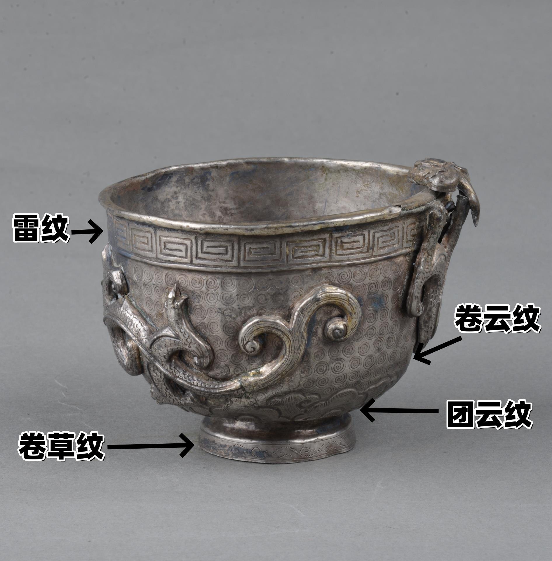 小龙则游动缠绕于银杯腹部