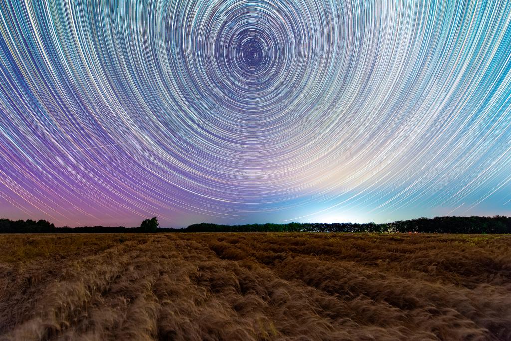 七、八月间,农作物进入成熟期。我使用超广角镜头,机位朝向小熊星座所在天域。星之轨迹,如时序变换的年轮。用长时间曝光抓取光阴刹那的流逝,恰似春种秋收,万物生长,都是辛勤劳作的报偿。