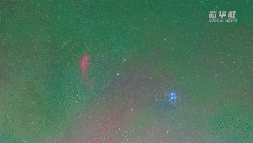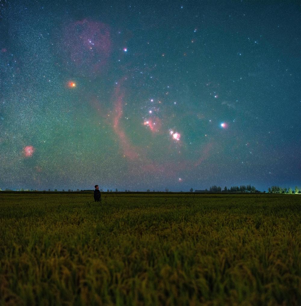 稻田上空的猎户座(9月4日摄,堆栈合成照片)。