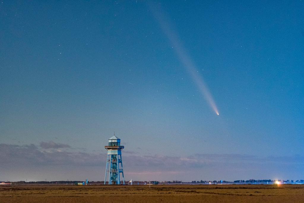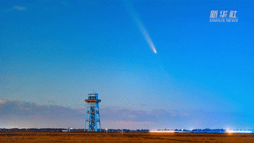 在富锦市万亩水稻公园拍摄的紫金山-阿特拉斯彗星(10月15日摄)。