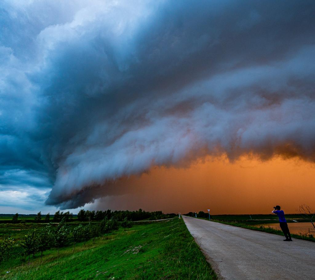 8月12日,在富锦市松花江边,我在拍摄途中偶遇雷暴。新华社发(朱宗强摄)