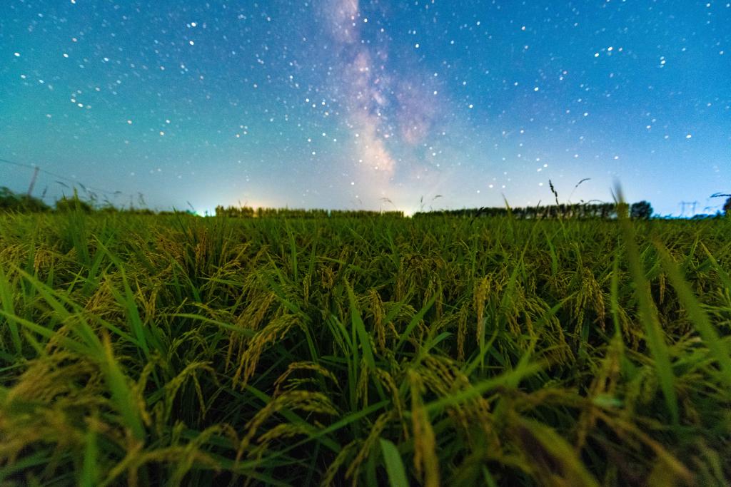 大地丰茂,苍穹高远。走进郁郁葱葱的稻田,齐腰的稻穗宛如波涛,头顶的银河倾流而下。夜色掩映下,饱满而“俯身”的谷粒、悬挂在叶片下的豆荚、黄橙青绿的稻子……璀璨星空下丰收的果实,即将从祖国最北方的黑土地奔赴千家万户。