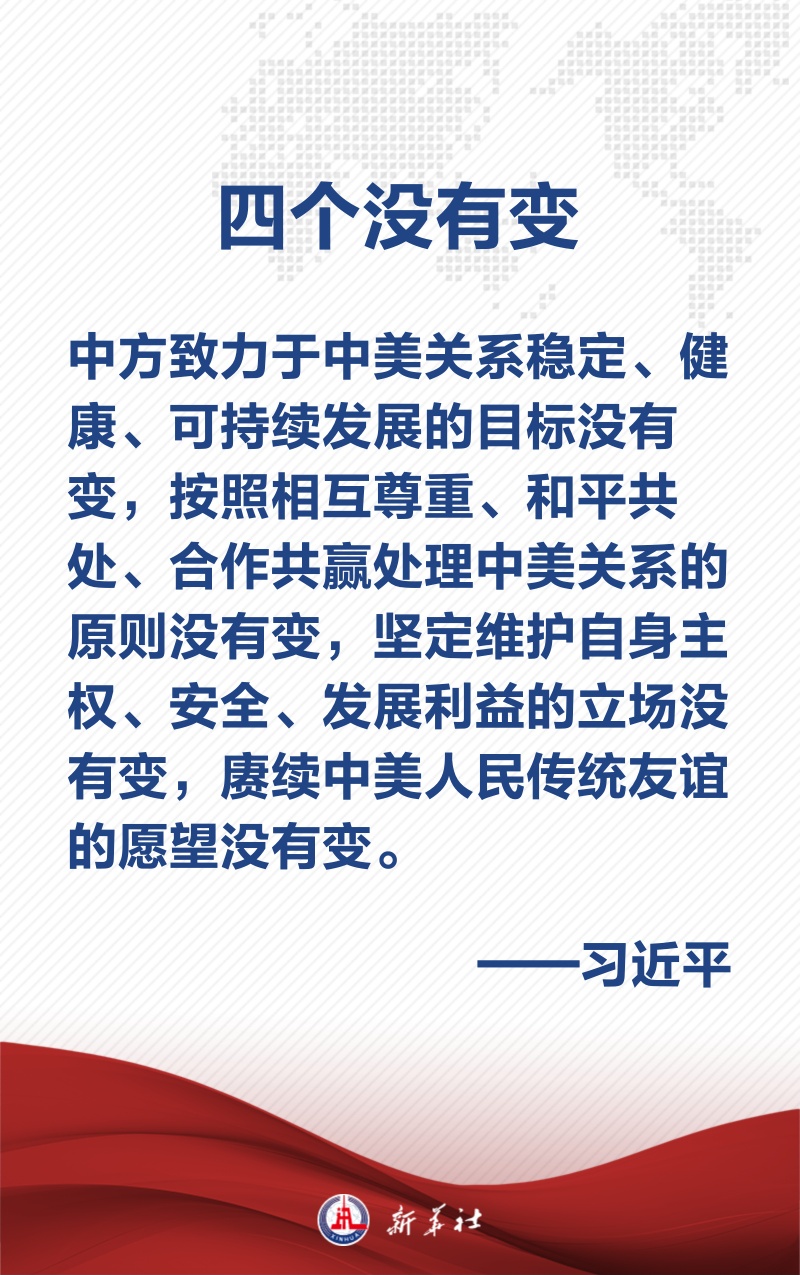 “四个没有变”的宣示,体现了中方对美一以贯之的政策立场,展现了中方愿继续同美方保持对话、拓展合作、管控分歧,努力实现中美关系平稳过渡,造福两国人民的良好意愿,为延续中美关系来之不易的企稳势头注入更多稳定性、确定性。