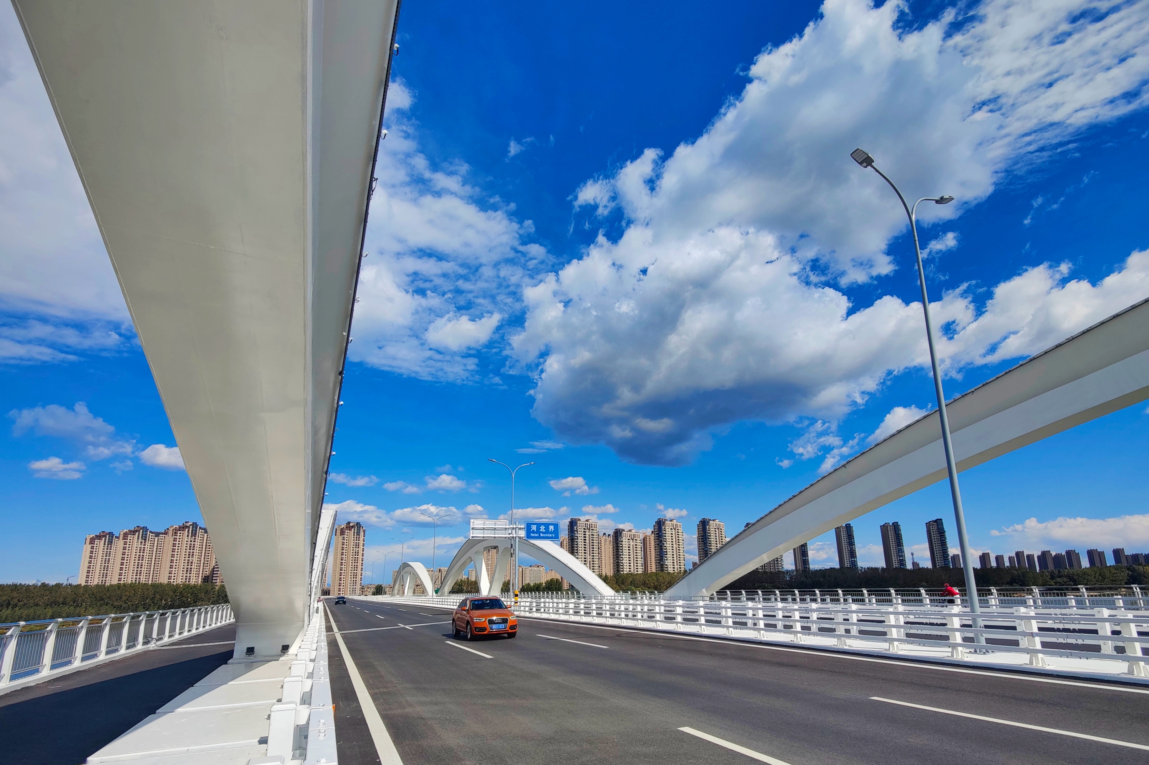 此外,在设计上,厂通桥主桥钢拱桥设计造型曾面向全球征集设计方案,最终,大桥的设计造型形似“舵轮”,外观采用多边形截面和圆拱相结合的样式,寓意着京津冀协同发展“扬帆启航”。除了可供汽车通行外,大桥两侧还设有宽3.5米的非机动车道,方便两地居民骑行。“行人无论是乘车还是骑行往来,都很方便。如今,大桥卧潮白河,呈现一幅水城交融、蓝绿交织的书画,已成为潮白河两岸人们打卡的新地标。”杨明辉说。