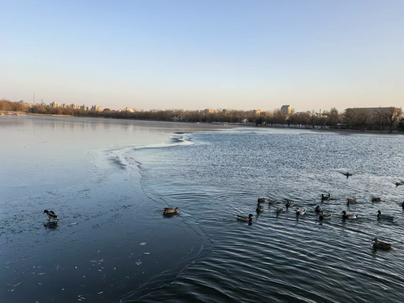 冬季的玉渊潭,游船只能静静地停在码头,而一半结冰的湖水,却成了鸟儿们的乐园。这里既有北京的“原住民”绿头鸭、小鷿鷈、白骨顶鸡,还有艳丽漂亮的国家二级保护动物鸳鸯,更有冬季才会迁徙到北京越冬的冬候鸟花脸鸭、针尾鸭。玉渊潭已成为东亚-澳大利西亚迁徙路线中重要的湿地补给站,其热闹的“湖中鸟乐园”也成为北京生态恢复的重要成果。