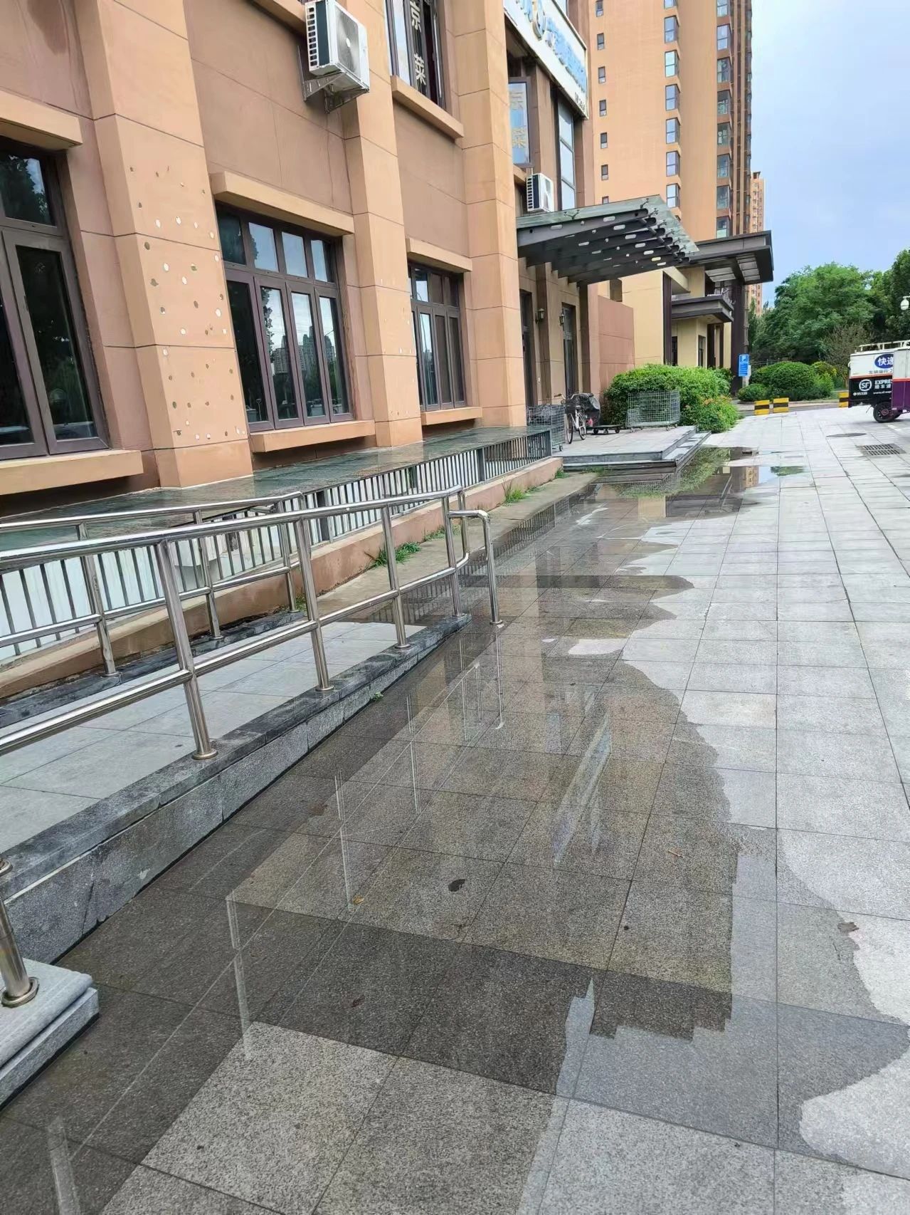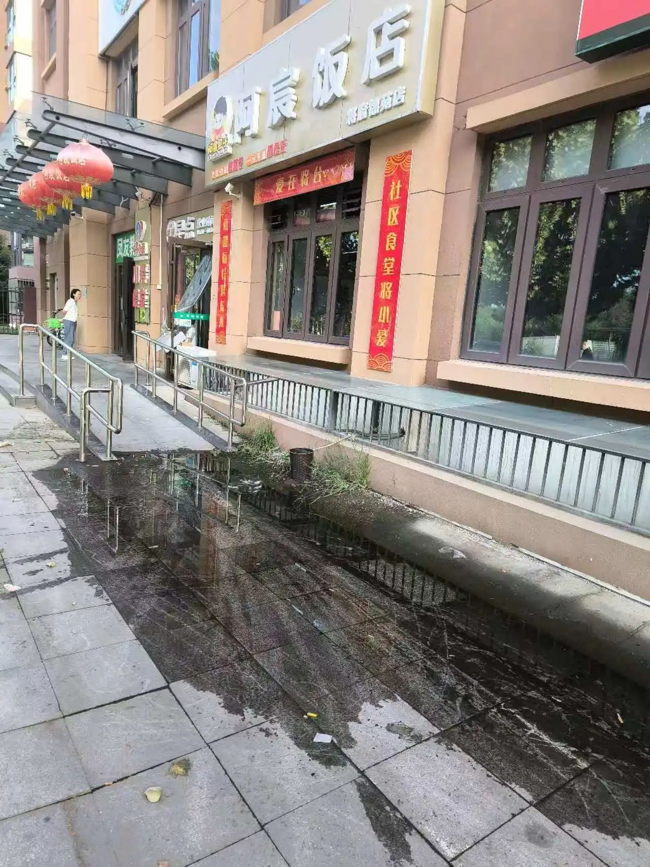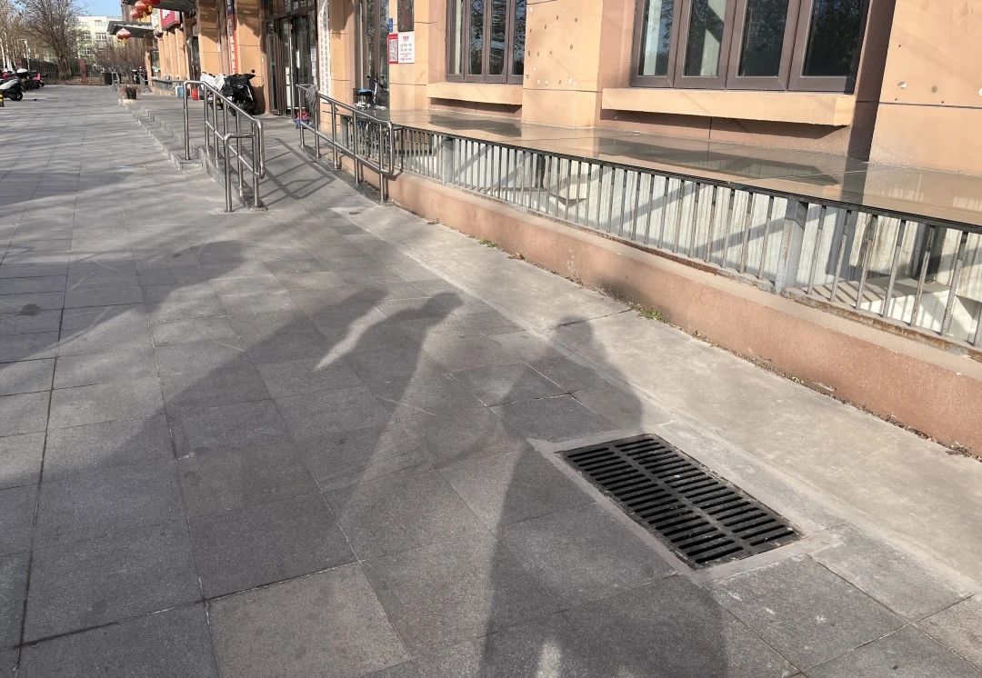 小区附近还有处揪心的隐患。4号楼下紧邻着临街路面,遇到雨雪天气,楼顶的水都顺着排水管流到了路面沉降处,加上沉降位置正好在街边无障碍坡道旁边,本应为老人、残疾人等特殊群体出行提供便利的通道,却因为这湿滑积水的路面,反而成了他们出行路上的“拦路虎”。
