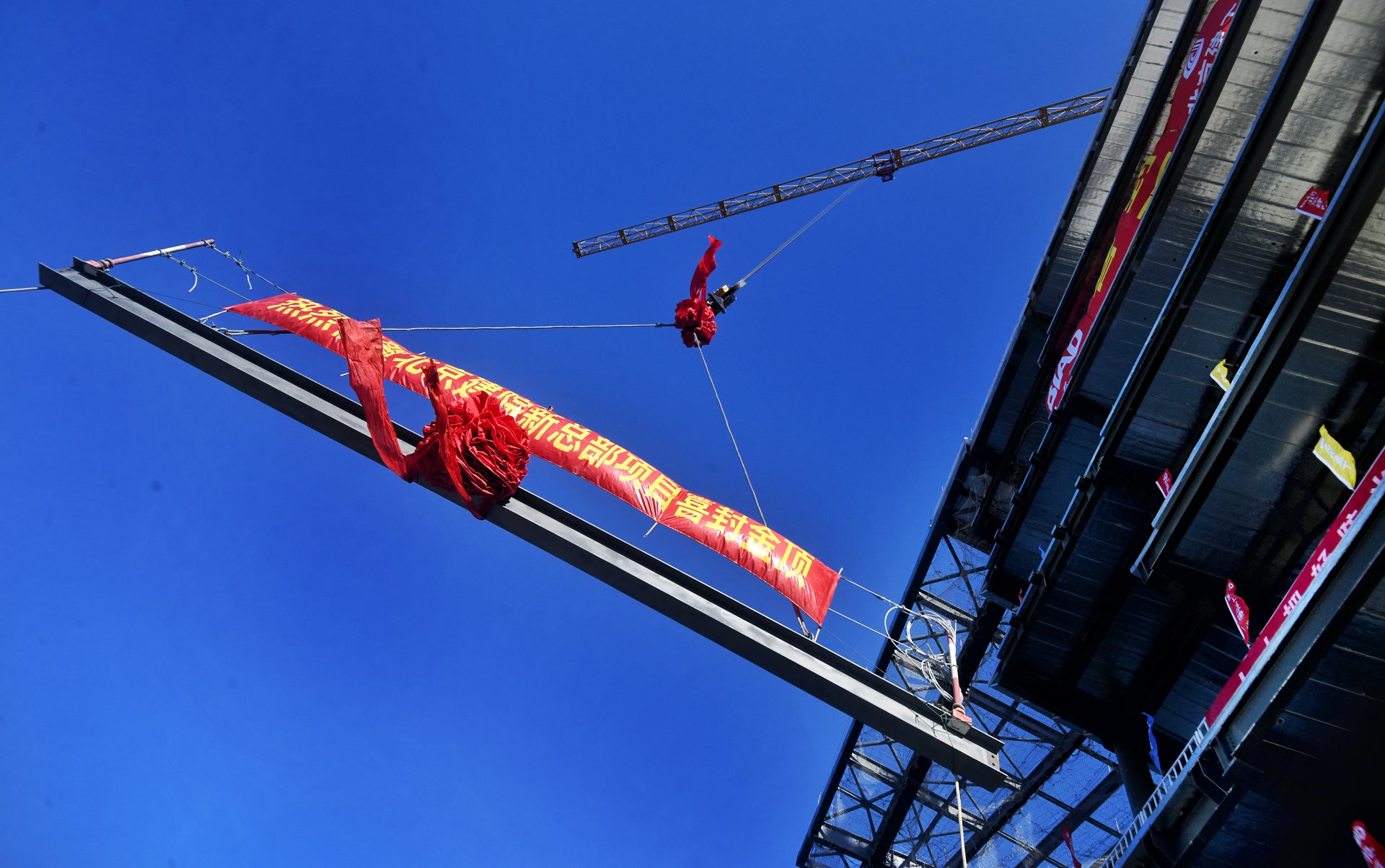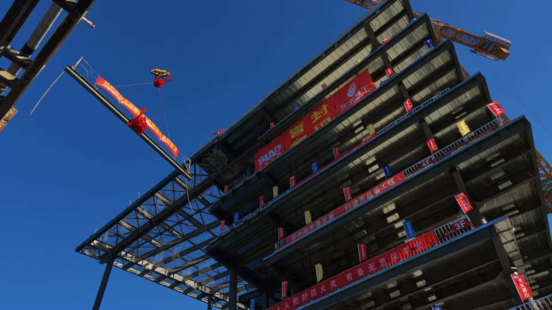 12月27日,在城市副中心张家湾设计小镇,随着最后一根钢梁安装到位,未来建筑科创中心工程实现主体结构封顶,建成后将成为北京市建筑设计研究院股份有限公司新总部。作为首批市属企业搬迁城市副中心项目之一,未来建筑科创中心将打造高质量办公建筑,并探索面向市民开放共享。